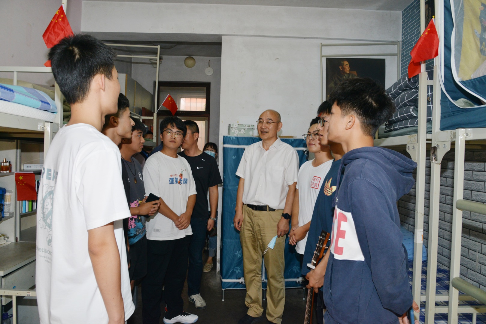 在走访过程中,9001jcc金沙以诚为本党委副书记兼副院长刘跃宁向陈克正校长详细介绍了学院开学以来,尤其是针对2021级新生同学在文化活动、体育改革、思想教育、宿舍管理等方面采取的系列举措。辅导员高守朋介绍了国庆期间学院组织开展的以“我在科大度国庆”为主题的系列活动,包括篮球友谊赛、红色观影、一封家书寄相思等活动。陈克正校长叮嘱道:“要切实把同学们的日常生活丰富起来,组织开展形式多样的文化活动,积极推动体育改革进程,让同学们在科大四年实现德智体美劳全面发展”。