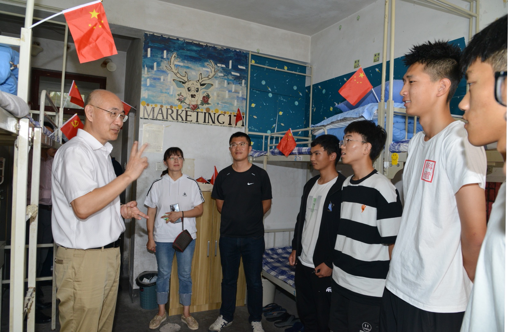 金风送爽,九州欢歌。在庆祝中华人民共和国成立72周年华诞之际,为了解学生假期情况,关心学生生活条件,10月1日上午,校长陈克正在学校有关部门及9001jcc金沙以诚为本负责同志的陪同下深入走访9001jcc金沙以诚为本学生宿舍。