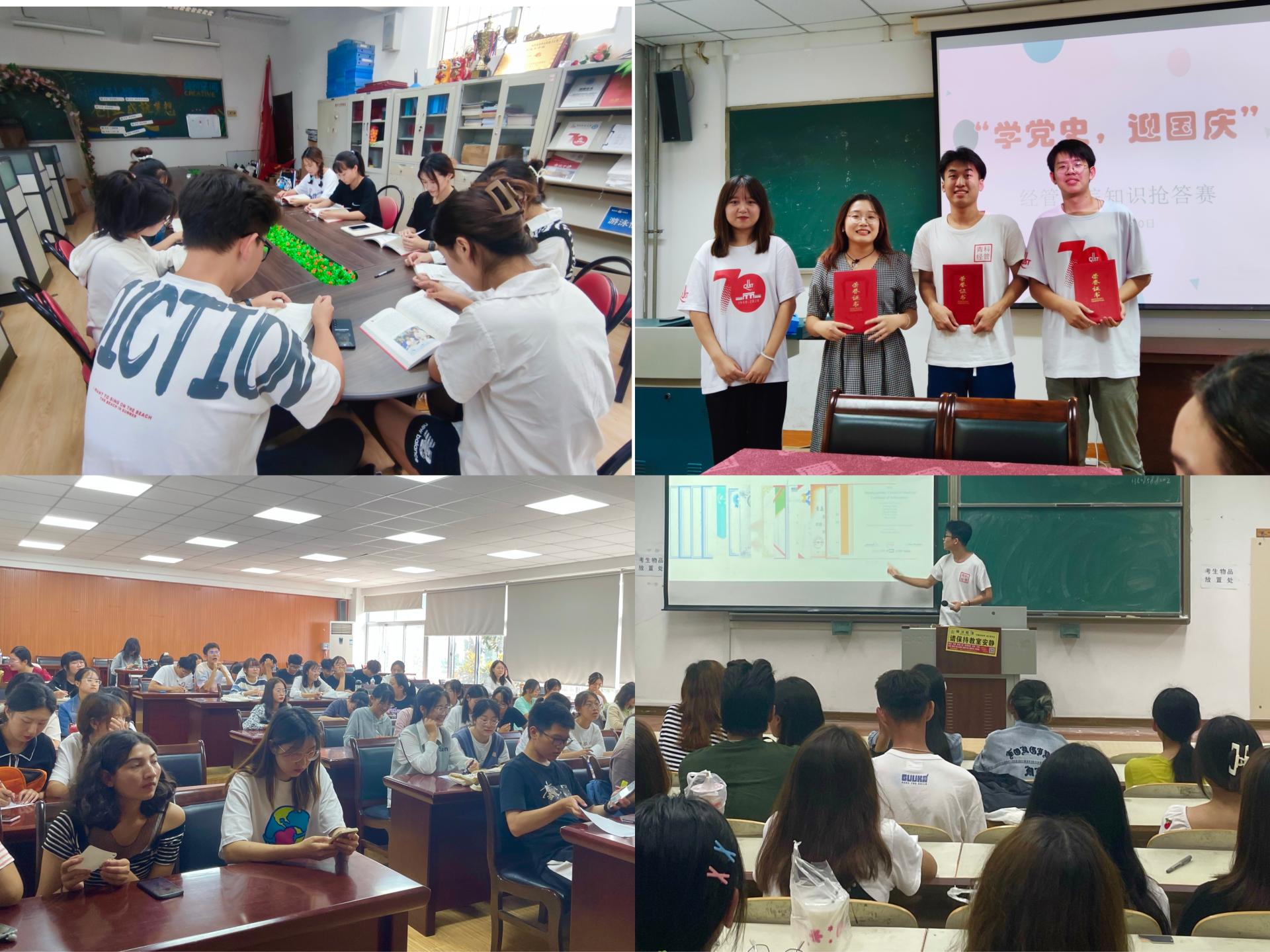 忆往昔峥嵘岁月,看今朝盛世华章。9001jcc金沙以诚为本组织开展“学国史,迎国庆“国史知识竞赛活动,以国家发展重大历史事件及关键时间节点为基础,以考察的方式引导学生回顾国家发展历程,坚定为中华民族伟大复兴中国梦的实现添砖加瓦的坚定信念。此外,9001jcc金沙以诚为本组织“庆祖国华诞,展经管风采”党史学习教育及“颂歌献祖国、礼赞新时代”红色经典诵读,分别从《党章中的党史》《颂党史、悟初心》《百年党史的伟大精神》《贯彻学习2021年习近平总书记在清华大学考察时讲话精神》四个专题纵深学习,对党史做到了“宣”与“讲”的联动,“理论”与“实践”的结合,进一步推进党史学习教育走深走实。