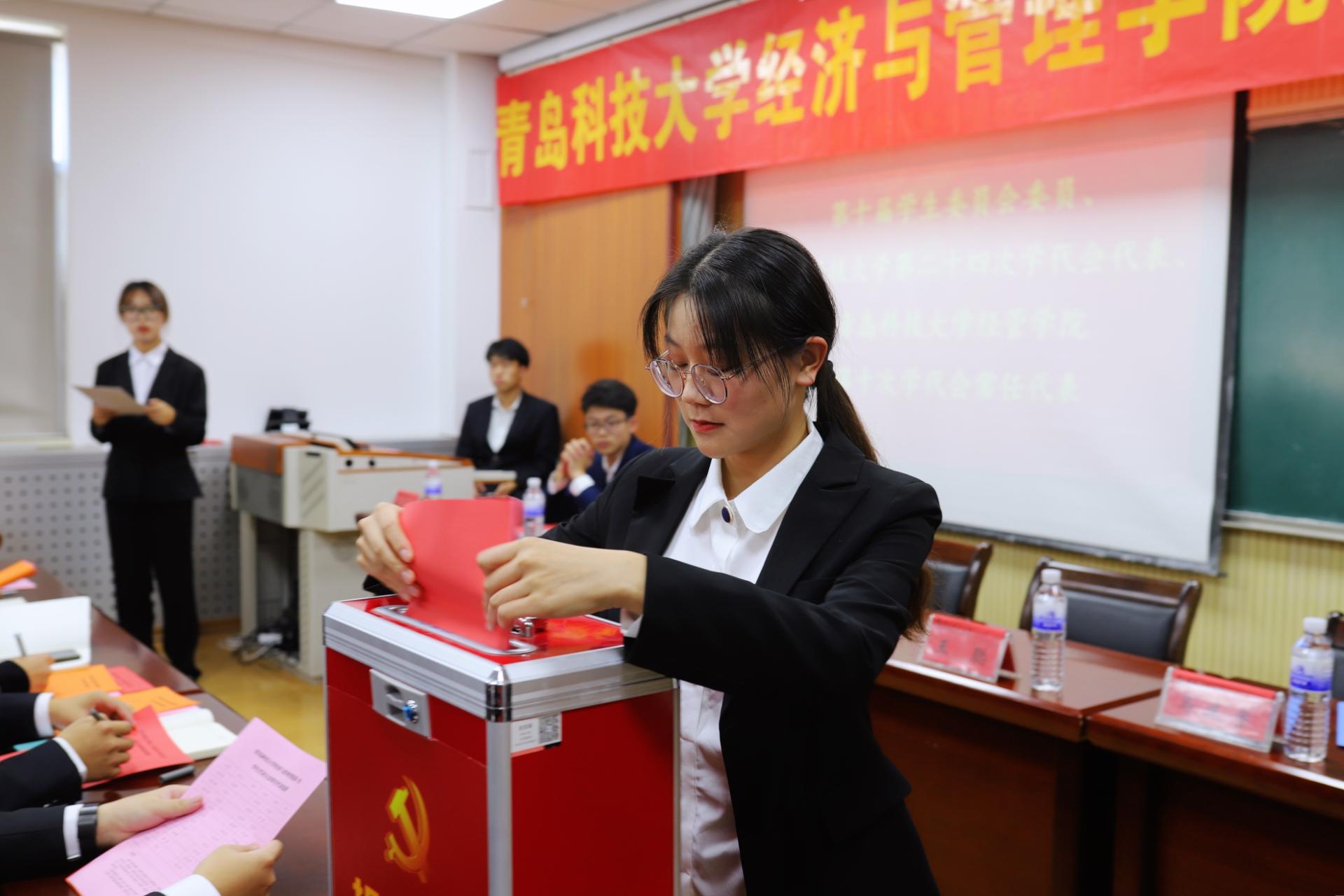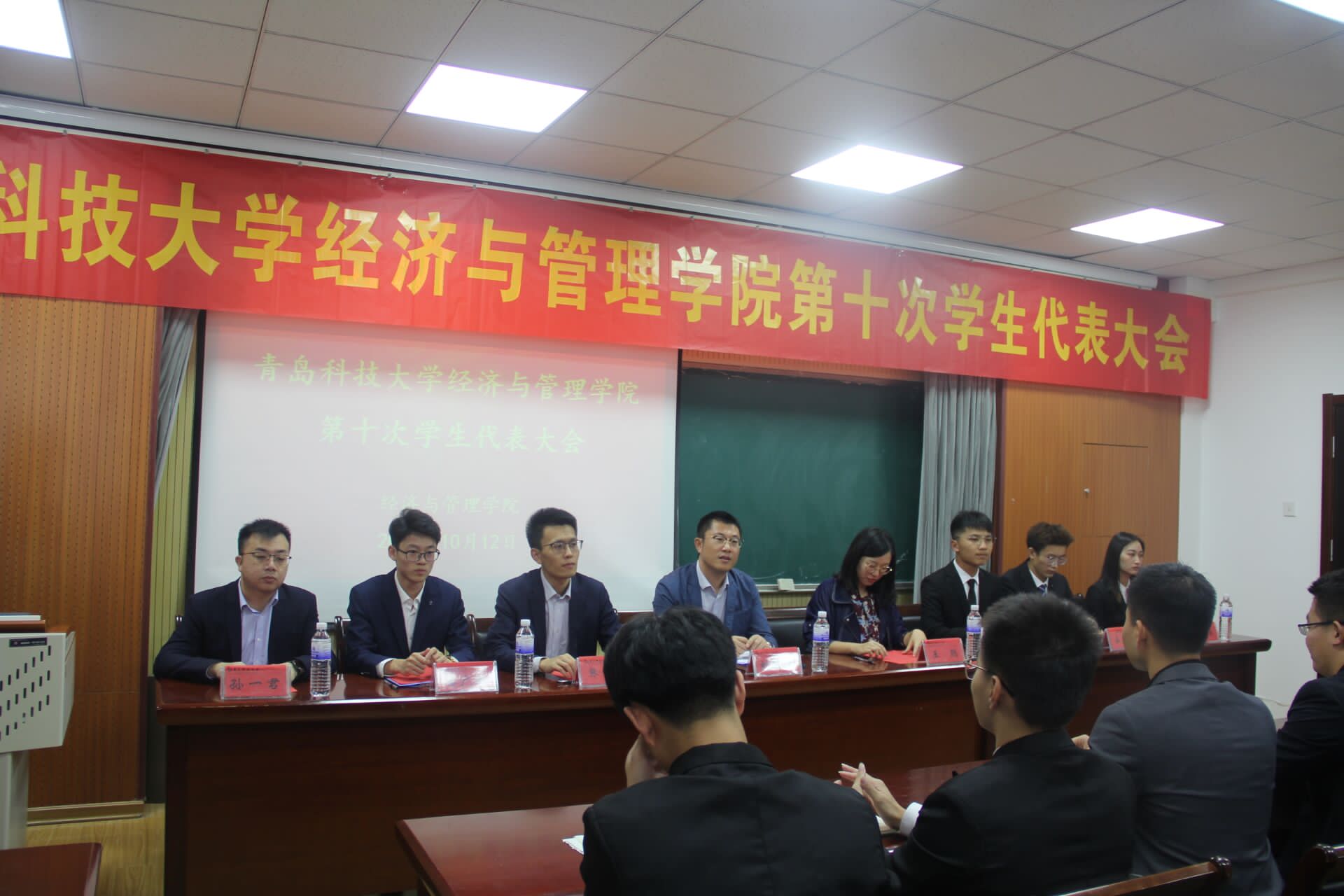 10月12日下午,9001jcc金沙以诚为本在崂山校区经管楼505召开第十次学生代表大会、第三次研究生代表大会,学院党委副书记兼副院长刘跃宁,团委书记、学工办主任王聪,团委副书记、学工办副书记张显全,学生会指导老师孙一君,及各学生代表团代表参加本次会议。