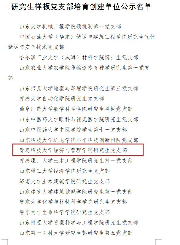 近日,根据《中共山东省委教育工委关于开展全省高校“研究生样板党支部”和“研究生党员标兵”创建工作的通知》(鲁教工委函〔2021〕1号)安排和评审工作方案,经组织推荐、专家评审、集体研究,共遴选产生了20个首批全省“研究生样板党支部”培育创建单位,金沙官网研究生党支部成功入选,是学校首个入选的研究生党支部。