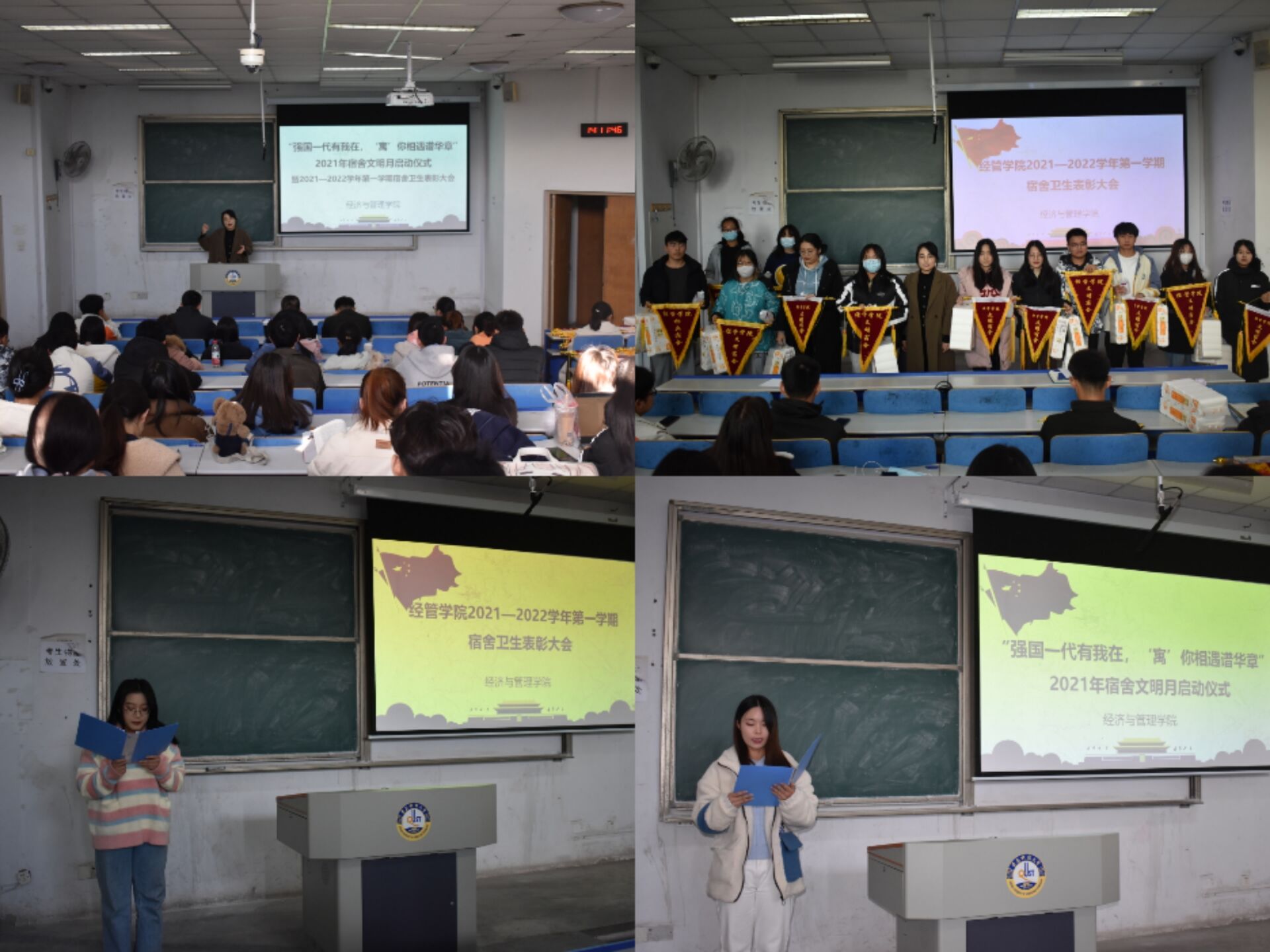 为贯彻落实党的十九届六中全会精神,坚定“四个自信”、增强“四个意识”,充分认识党的百年奋斗的历史意义和“十个坚持”的历史经验,切实把会议精神贯彻到推动校园守正创新、爱国爱党的文化建设中,塑造明亮清雅的宿舍环境,展现9001jcc金沙以诚为本同心同德风气,增强经管学子成为时代先锋、民族脊梁理想信念,11月30日,9001jcc金沙以诚为本于弘毅楼E303教室举行“强国一代有我在,‘寓’你相遇谱华章”宿舍文化月启动仪式。