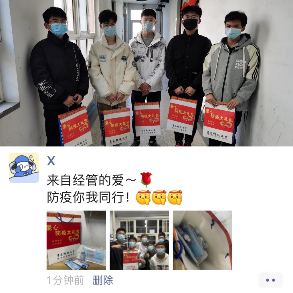 收到“爱心防疫大礼包”后,经管学子纷纷表示,在疫情常态化的当下,学校学院的暖心举动为学生学习生活增加了一层安全保障,感受到了学校学院的贴心关爱,对疫情防控更有信心,并表示将严格遵守学校的疫情防控管理要求,积极配合校园疫情防控工作。