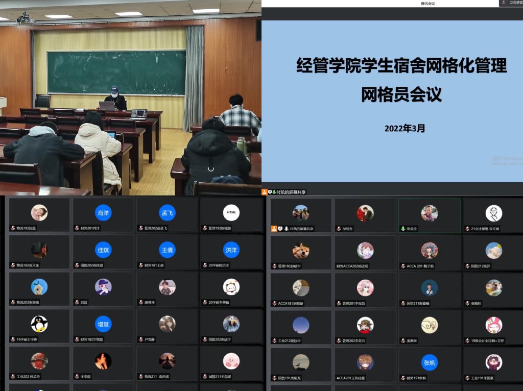 为全面贯彻落实上级部门和学校关于疫情防控工作的具体要求,9001jcc金沙以诚为本坚持将学生安全健康放在第一位,灵活用好宿舍阵地,深入推进宿舍网格化管理,不断提升精准防控水平。3月22日晚,学院通过线上线下相结合的方式,于经管楼419会议室召开宿舍网格员线上会议,进一步落实疫情防控各项措施,学生宿舍所有楼长、楼层长及各年级专兼职辅导员参会。