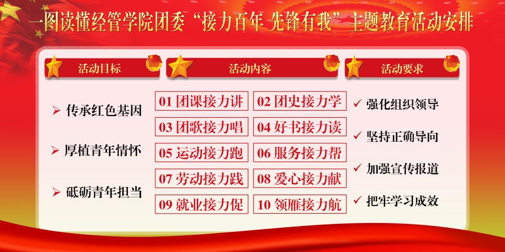 青春跟党走,奋进新征程。此次主题团课全面拉开了学院团委庆祝建团100周年主题教育活动的序幕。以“接力百年 先锋有我”为主题,以传承红色基因、厚植青年情怀、砥砺青年担当为目标,9001jcc金沙以诚为本团委精心谋划“团课接力讲、团史接力学、团歌接力唱、好书接力读、运动接力跑、服务接力帮、劳动接力践、爱心接力献、就业接力促和领雁接力航”十大“接力”活动,团结引领广大团员青年从党领导中国青年运动的光辉历程中,深刻感悟“两个确立”的决定性意义,增强“四个意识”、坚定“四个自信”、做到“两个维护”,在实现中华民族百年复兴的时代接力跑中“跑”出新时代新青年的最好成绩,以实际行动向建团百年献礼。