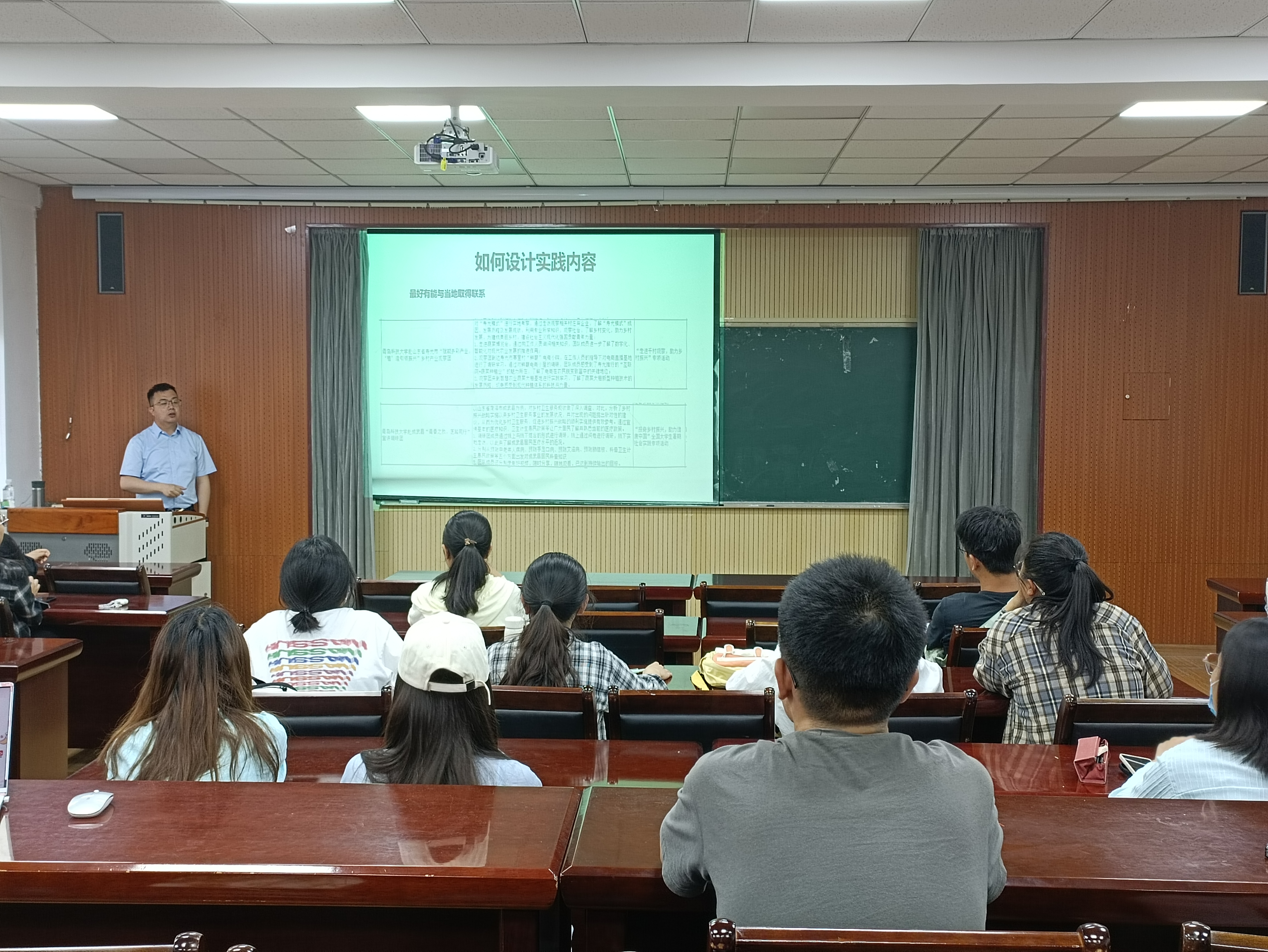 孙一君从社会实践的意义与类型两个方面说明什么是社会实践,用“六步”——明确主题、合理分工、立项申请、宣传推广、报告撰写、评比争优,详细介绍了暑期社会实践开展的全过程,并对立项申请书撰写和宣传推广方面进行重点培训。孙一君指出,同学们应当通过此次培训会,以培训内容为基本框架,挖掘地方特色与社会热点问题,结合实际形成独具特色的实践模式,积极推进社会实践的开展。