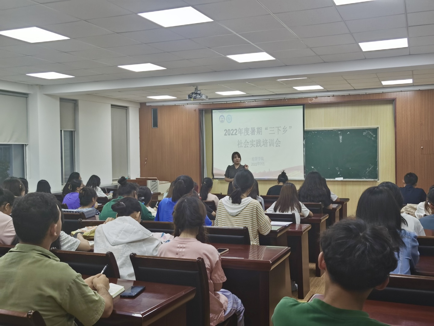 为深入学习习近平总书记在庆祝中国共产主义青年团成立100周年大会上的重要讲话精神,激发同学们参与暑期社会实践的热情,在学思践悟中听党话、跟党走,7月5日晚,经管学院召开2022年暑期“三下乡”社会实践专题培训会,2021级辅导员张鸣、李文明及21级社会实践队队长参与培训会。