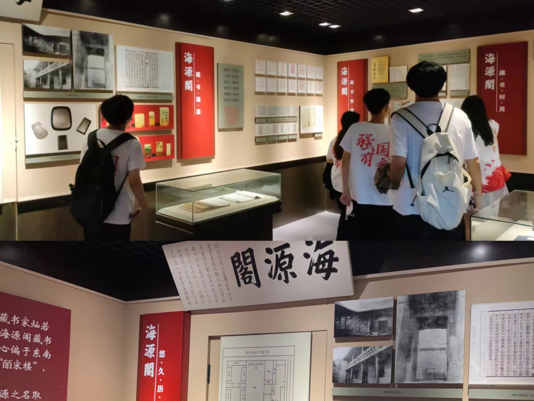 海源阁除了收录了中国的传统古籍,还收录了近代以来影响中华民族走向的书籍——《论毛泽东哲学思想》、《中国共产党历史讲义》、《列宁全集》、《马克思恩格斯选集》等。从展柜里展览的布满岁月痕迹的一本本书籍和海源阁墙壁上关于各种事迹的介绍中感受中国近代的思想历程。一本本书籍犹如一台台时光的机器,让同学们更好的了解了近代文化的魅力。