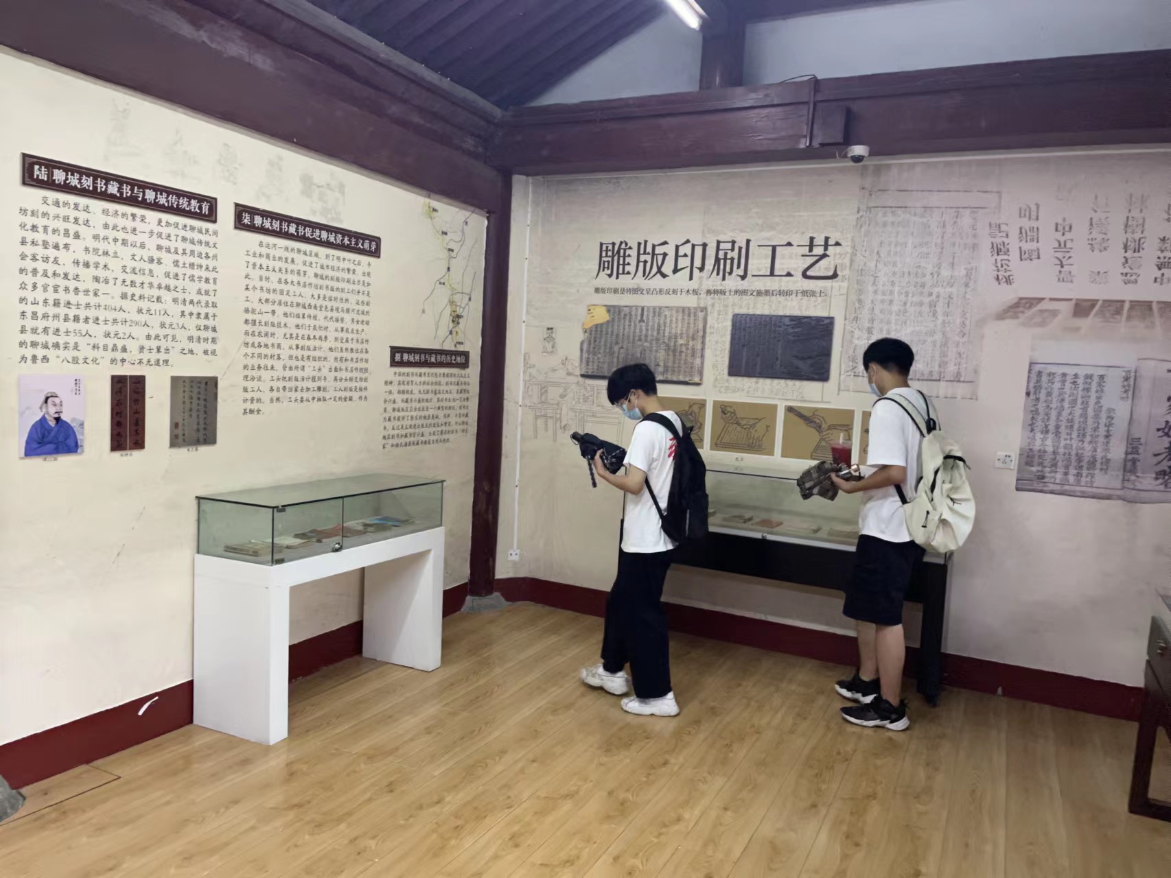“雕塑的语言是体积的语言”雕版印刷术作为中国四大发明之一,一直是中华民族根植于内心得骄傲与自豪。在这次活动中,同学们为了真正走进雕版术,先从海源阁的壁画和文字上了解雕版印刷术的历史与工艺,了解雕版印刷的传统工艺对聊城藏书的重要意义,近距离感受雕版印刷作品的魅力。