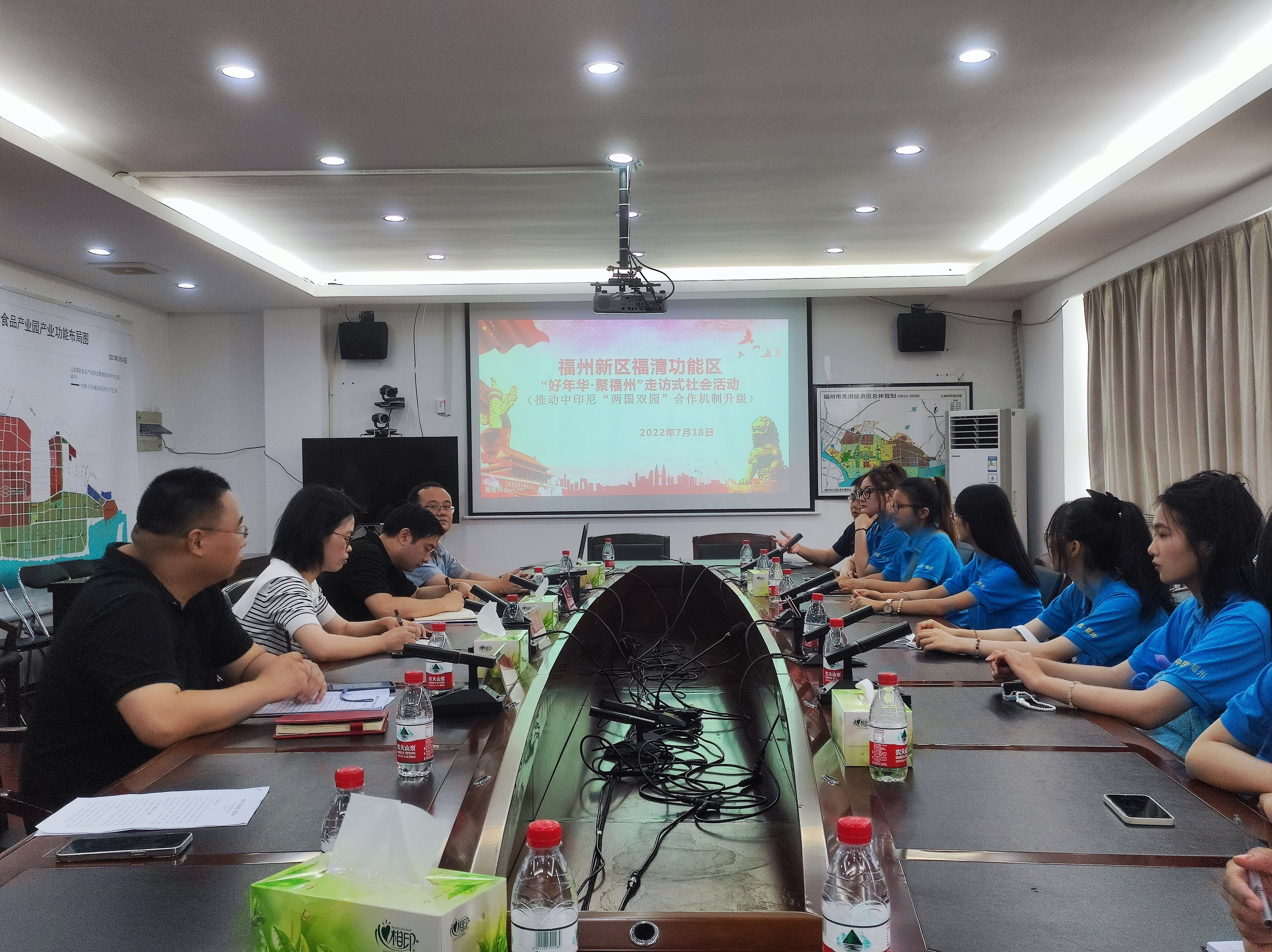 7月18日,实践团抵达第一站福州新区福清功能区管委会,福清团市委副书记魏原野、福州新区福清功能区管委会综合处副处长余林林热情接待了实践团。座谈会中,余处长由“两国双园从哪里来?”这个小问题引入,生动形象的讲解了时任福州市委书记习近平同志牵头华侨商会领袖林绍良,由给村民送米、粮、油的“送蛋”,转变为建设一个为当地经济发展有巨大贡献的元洪开发区的“养鸡”。并引出三个十年期间,为实践团理清了元洪开发区的发展历程,第一个十年和第二个十年由于亚洲金融危机和产业定位不明,元洪新区的发展遭遇挫折。当前,在第三个十年的节点,园区明确了以食品产业链为主的定位,元洪开发区终于不负众望,真正腾飞起来。形成了产业互联:海外种养殖与特色农产品连结;设施互通:京东物流平台和电商平台共同助力发展,码头、冷链、数字化、人才共同发展;政策互惠:减税降费,海关政策互通,开辟双方互利的绿色通道。实践团真切了解并理清了元洪开发区的发展脉络,并结合专业知识明确下一步研究方向。