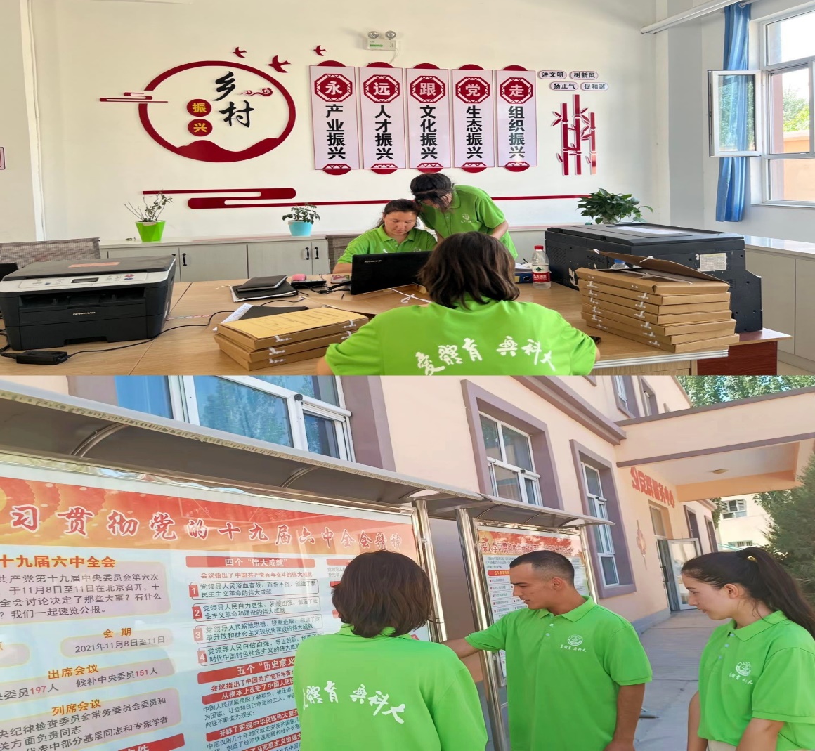 上午,暑期社会实践团队与色满乡提坎贝西村村委会进行了座谈交流会,提坎贝西村农村发展中心副主任阿布都克比尔·吐尔逊、社会实践团队指导老师热孜亚及团队全部成员参加此次交流座谈会。实践团队与村委干部就本村的发展情况进行了一番深入交流,细致地了解了提坎贝西村近年来农业、商业、旅游、手工艺品等本土化发展情况。在村委干部的引领下,大家深入村里进行实地考察调研。通过村民们的介绍,队员了解并记录了乡村振兴发展历程和现行模式的基本概况。团队成员根据了解的信息,向村委干部提出了一些有关推广普通话的可行性建议。村委干部表示,村委会已经准备为村民们开展“夜校”,并将结合实际情况不断提高当地普通话水平,推动乡村振兴。