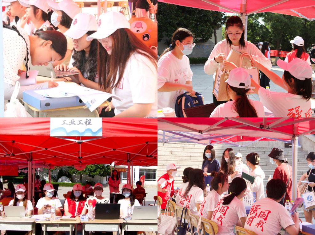 全心服务,周密细致传递经管温度。学院多次召开迎新志愿者培训会,学生会分部门进行工作切块,确保各项任务都能落实到位;迎新当天百余名学生骨干、党员积极分子和普通同学主动作为、担当尽责,将“志”内化于心,“愿”外化于行, 加入学院迎新志愿服务队,为新生提供“点对点”帮助。早上六点,志愿者在学校东门、西门、弘毅广场、宿舍楼下等位置全部就位,迎接新生入校,帮助新生搬运行李,不让一个新生落单。报到现场,学院设置党员先锋岗、绿色通道专区,为全体新生发放“经”心新生大礼包、防疫物资、清凉贴等暖心物品,设置朋友圈打卡背景板、手持KT板、“大学初印象”之新生采访等具有学院特色的迎新活动,让新生感受到浓浓的“经管情”。