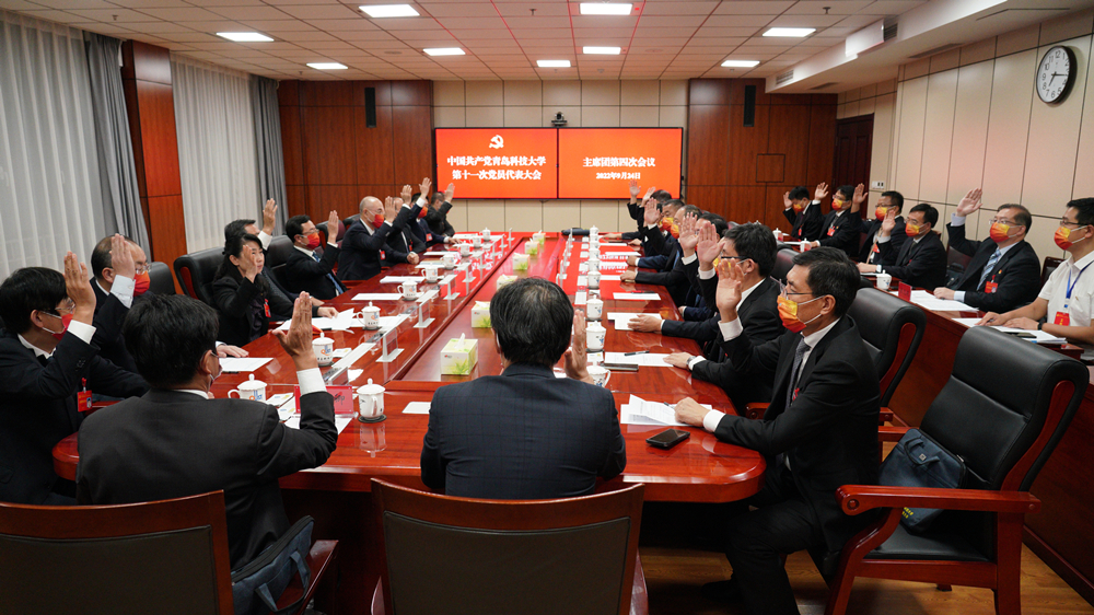 9月24日晚,中国共产党9001jcc金沙以诚为本第十一次党员代表大会主席团第四次会议在崂山校区综合服务楼6015会议室召开。李兴伟同志主持会议,主席团成员参加会议。