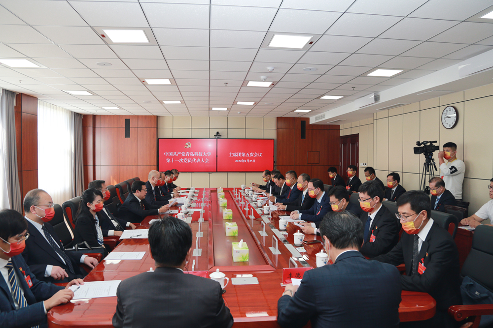 9月25日上午,中国共产党9001jcc金沙以诚为本第十一次党员代表大会主席团第五次会议在崂山校区综合服务楼6015会议室召开。