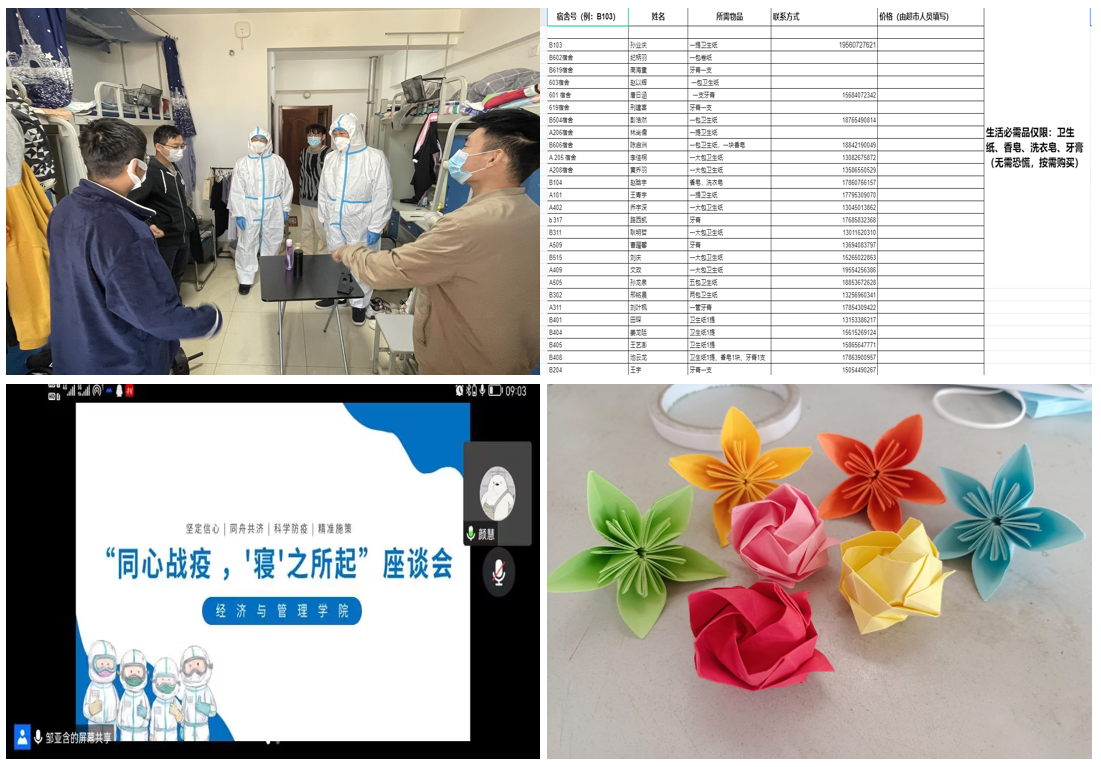 坚持“生”字为本,解决难题慰人心。校园静默管理以来,9001jcc金沙以诚为本想学生所想,急学生所急,学院书记、院长及辅导员深入学生宿舍,了解学生的生活情况,完成学生一对一谈话及重点学生访谈工作,确保特殊时期安全稳定;各宿舍楼宇通过建立在线表格,及时调研、收集静默同学的各项需求,整理成任务清单,最快速度解决问题;静默管理解除后,学院在遵循疫情防控管理要求的基础上,第一时间召开楼层长抗疫总结分享集体心理团辅活动,以暖心的水果和茶点慰问辛勤付出的志愿者同学,鼓励大家继续发扬抗疫精神,以永不懈怠的精神状态和一往无前的奋斗姿态,团结一心,加压奋进。