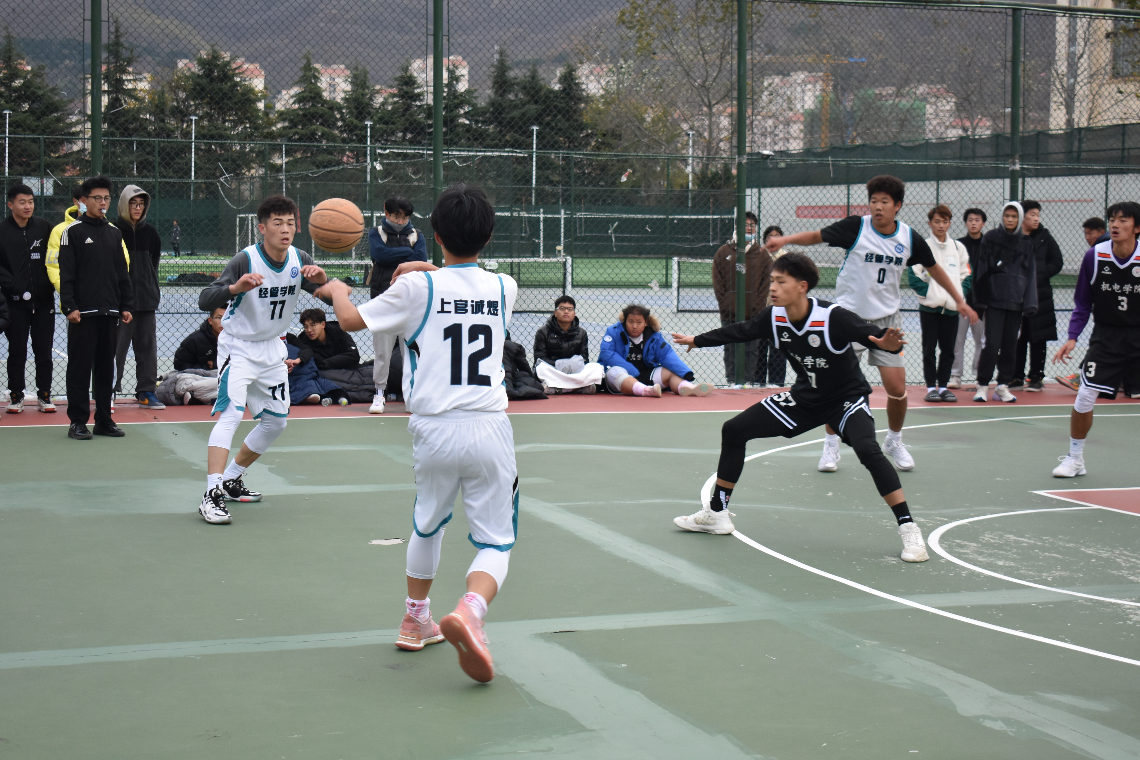 同学们热情高涨,积极参与本次活动。比赛过程也是异常激烈,欢呼与呐喊声不绝于耳,观战同学们为场上的运动健儿们加油鼓劲。“经管,防守!”,“机电,防守!”比赛过程中,篮球健儿们主动出击,以矫健熟练的动作迅速传球大家在场上都拼尽全力,不放过任何一个可以得分的机会,直击篮板。经管篮球队员们在场上你争我夺,你守我攻,充分体现了艰苦奋斗,团结勇敢的经管精神。