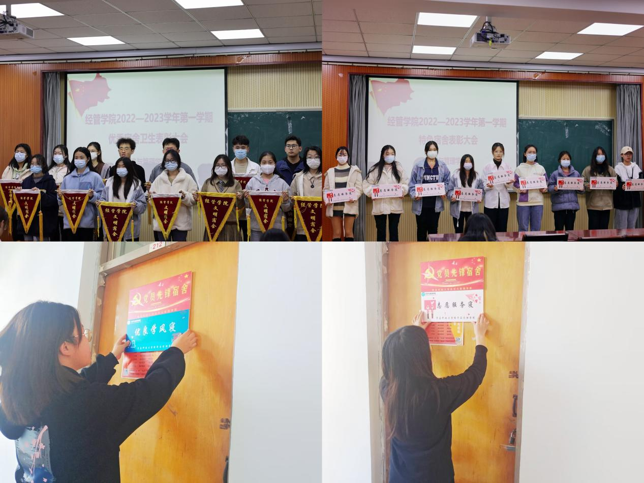 宿舍是学校实现管理育人、环境育人和服务育人的重要阵地,是学校精神文明的窗口,金沙官网通过“自荐+评审”的方式筛选出优秀宿舍,并颁发“党员先锋宿舍”“志愿服务寝”“活力体育寝”“优良学风寝”多元化定制门牌,充分发挥党员和青年榜样的带头作用,利用宿舍第二课堂,树立优良学风,促进同学间相互学习,锐意进取,向优秀宿舍看齐。