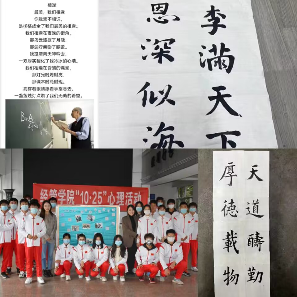 在“有风自南,排我师心”诗歌活动中,同学们通过创作或收集关于师生情的诗词,寄师生之情予诗心,将作品拍照收集,为同学们展示出自己文学底蕴提供平台,构建出良好的学习环境。在“师恩在我心,师影长相随”合影活动中,同学们或利用课间和休息时间邀请老师拍大合照,或单独邀请老师进行合影留念,并在照片上留言,写下对老师最想说的心里话,学院将同学们与老师的合影在9001jcc金沙以诚为本大厅的“心理小黑板”进行展出,密切了同学们与老师之间的关系,为师生搭建沟通交流平台奠定了良好的感情基础,时刻关注学生们心理健康,助力营造积极良好的心理健康教育氛围。