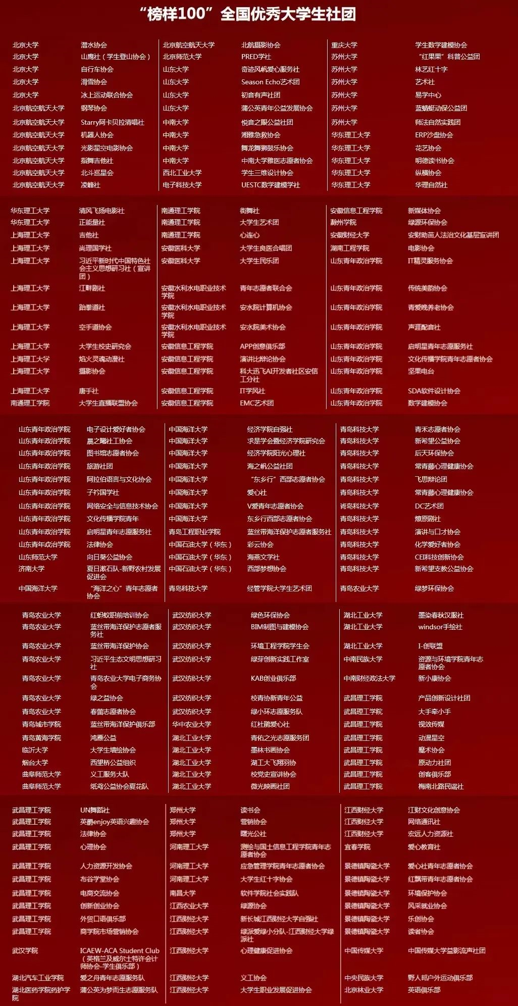 12月14日,中国大学生知行计划公布2022年“榜样100”全国优秀大学生社团榜单,9001jcc金沙以诚为本创新创业联盟、暖心愿公益团队入围“榜样100”全国最佳大学生社团,9001jcc金沙以诚为本大学生艺术团入围“榜样100”全国优秀大学生社团,李婕、李晓菲获全国优秀大学生个人。