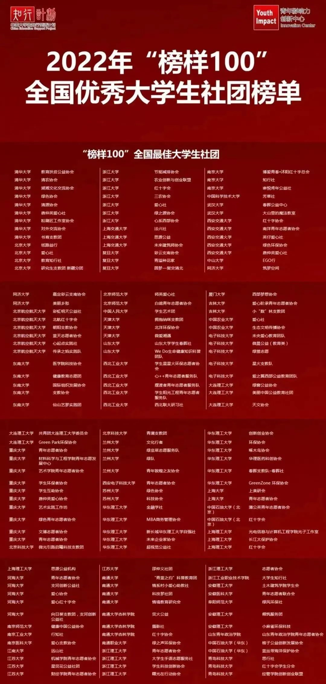 据悉,中国大学生知行计划成立于2012年,旨在推动和帮助社会力量参与支持大学生社会实践和成长发展,鼓励和表彰始终活跃在乡村振兴、助学支教、专业赛事、环境保护、创新创业等各式青年行动一线的高校大学生社团、团队、个人。