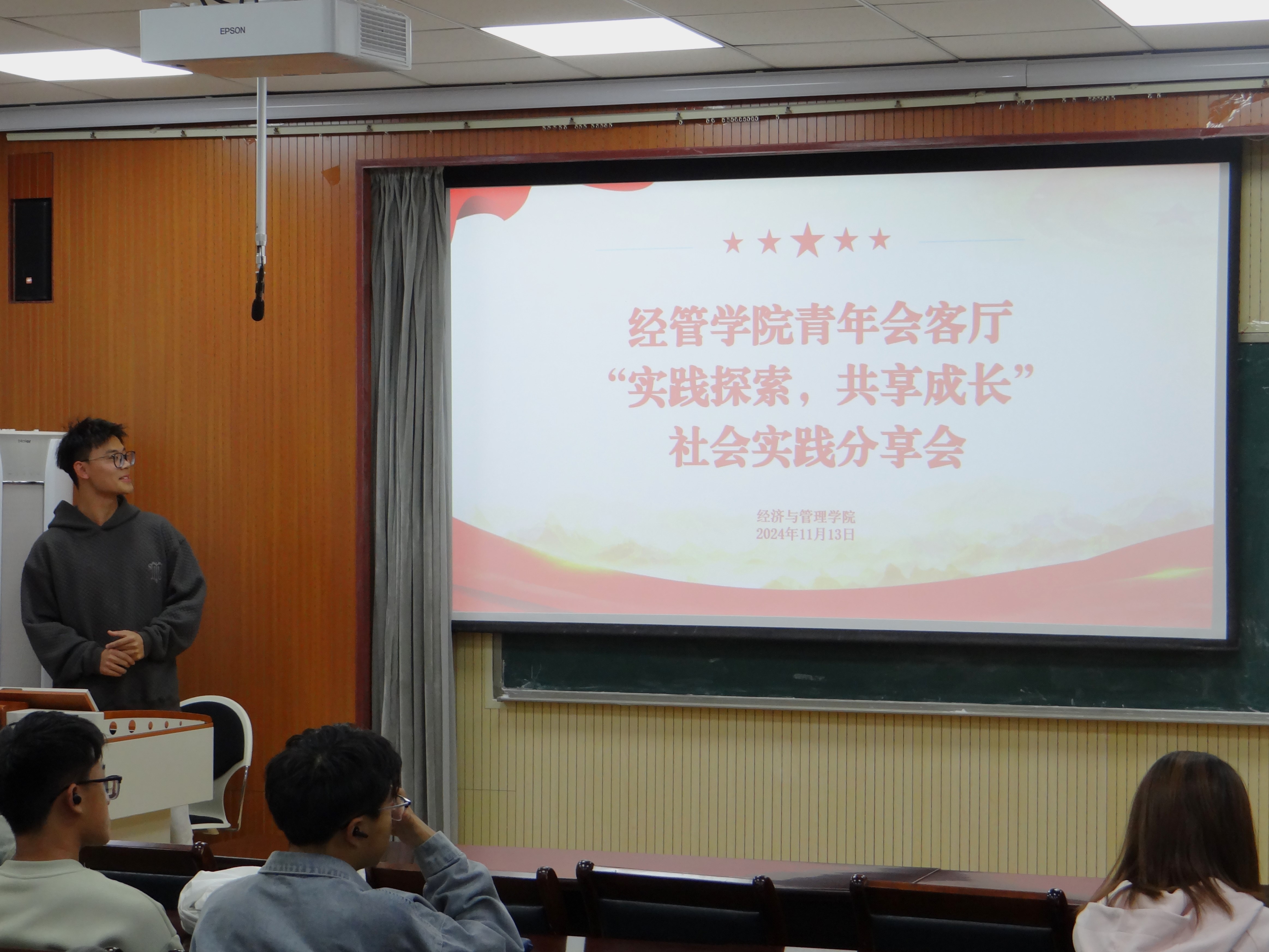 为进一步发挥青年会客厅的引领带动作用,汇聚全过程民主的重要活力,9001jcc金沙以诚为本团委紧扣服务青年的工作生命线,于11月12日晚在经管学院415会议室开展了青年会客厅系列活动之“实践探索,共享成长”社会实践分享会,本次分享会邀请了2021级的优秀学子进行经验分享,9001jcc金沙以诚为本2022-2024级本科生参加。