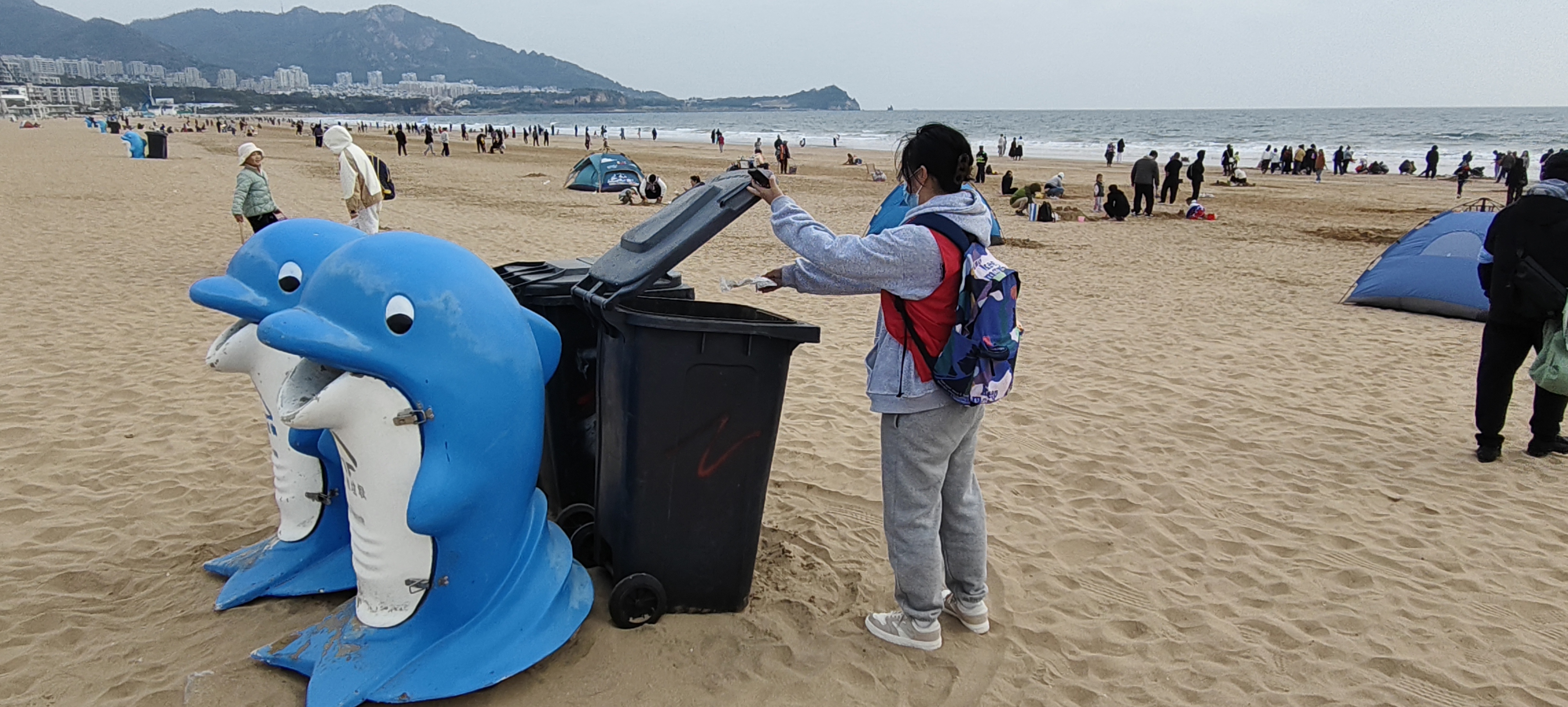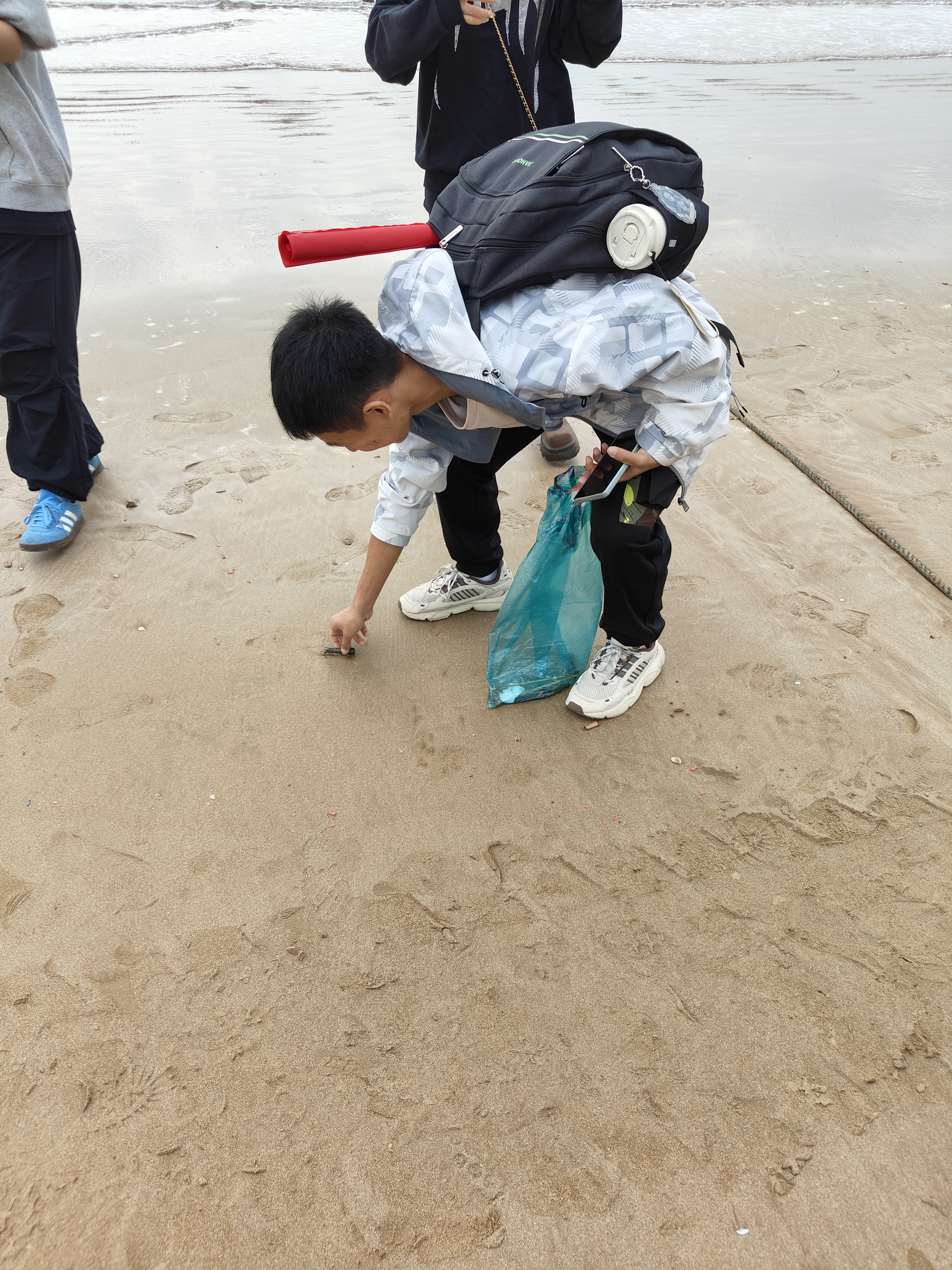 筑梦海洋,绿色启航。为更好地保护沿海沙滩生态和维护海岸沿线环境卫生,暖心愿社团带领国贸和物流专业各班,在石老人海水浴场开展“还海滩一片洁净·经管在行动”志愿服务活动。青年志愿者们手持垃圾钳、垃圾袋等工具前往石老人海水浴场,对散落在海滩边的塑料泡沫、矿泉水瓶、塑料袋和食品包装等白色垃圾进行拾捡。同时,志愿者们积极向周边群众宣传环保知识,号召大家相互监督,杜绝随意向海洋丢弃垃圾,引导群众爱海护滩,进一步营造爱海、护海的社会氛围。