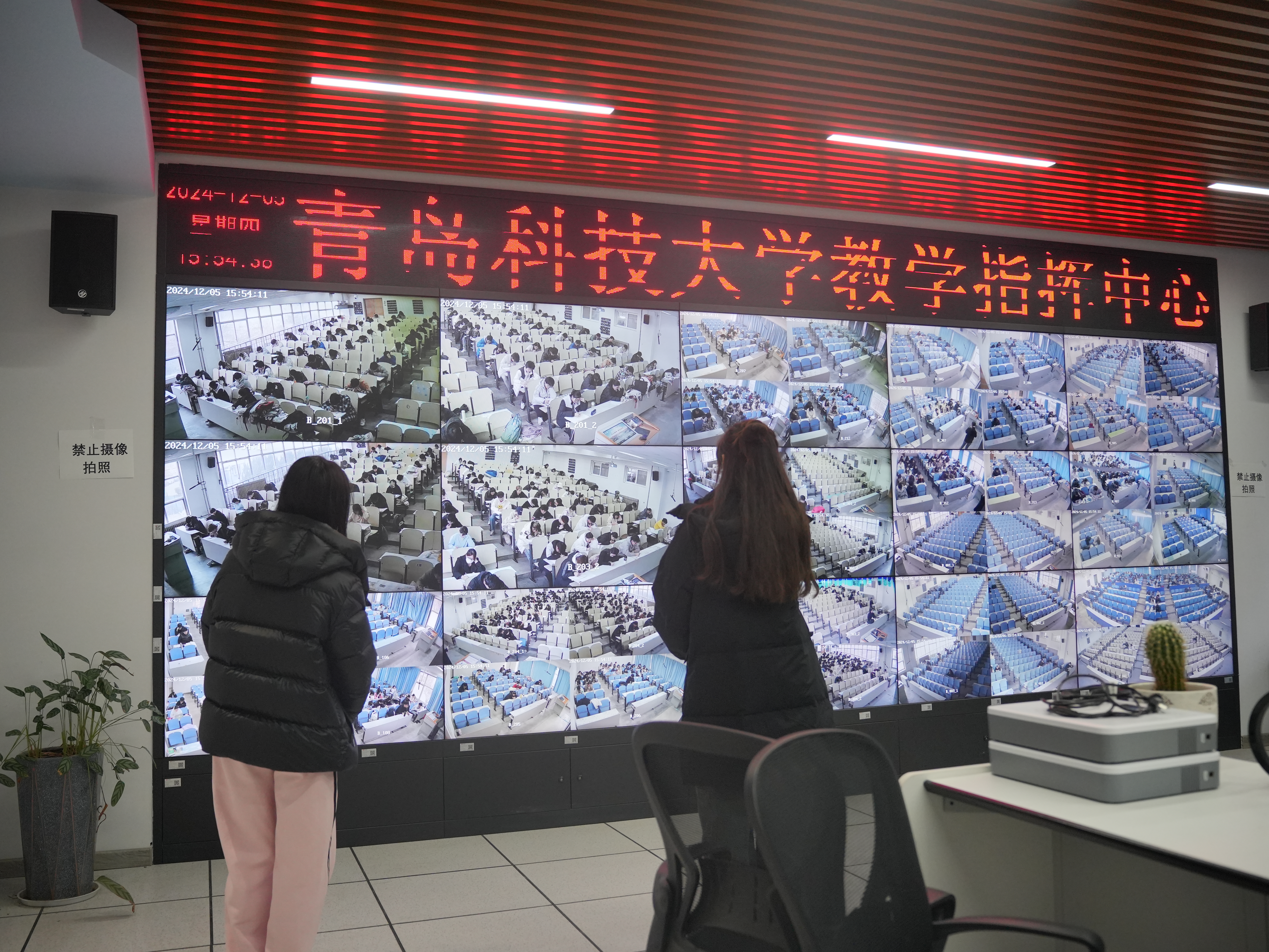 考试期间,9001jcc金沙以诚为本创新考务模式,采用无人监考与老师监考并行的方式。考场内,监考人员恪尽职守,严肃落实考试纪律要求,确保考试秩序井然;监控调度室内,辅导员老师在监控调度室观看学生考试情况,确保监考的及时性和公平性。无人监考模式的推行,旨在引导学生实现从“要我诚信”到“我要诚信”的思想转变,起到了积极的示范效果。两种监考模式相互补充、相得益彰,既有力地保障了考试的公平公正,又着眼于学生诚信品质与自律能力的长远培养,双管齐下,为学院学风建设注入强劲动力。