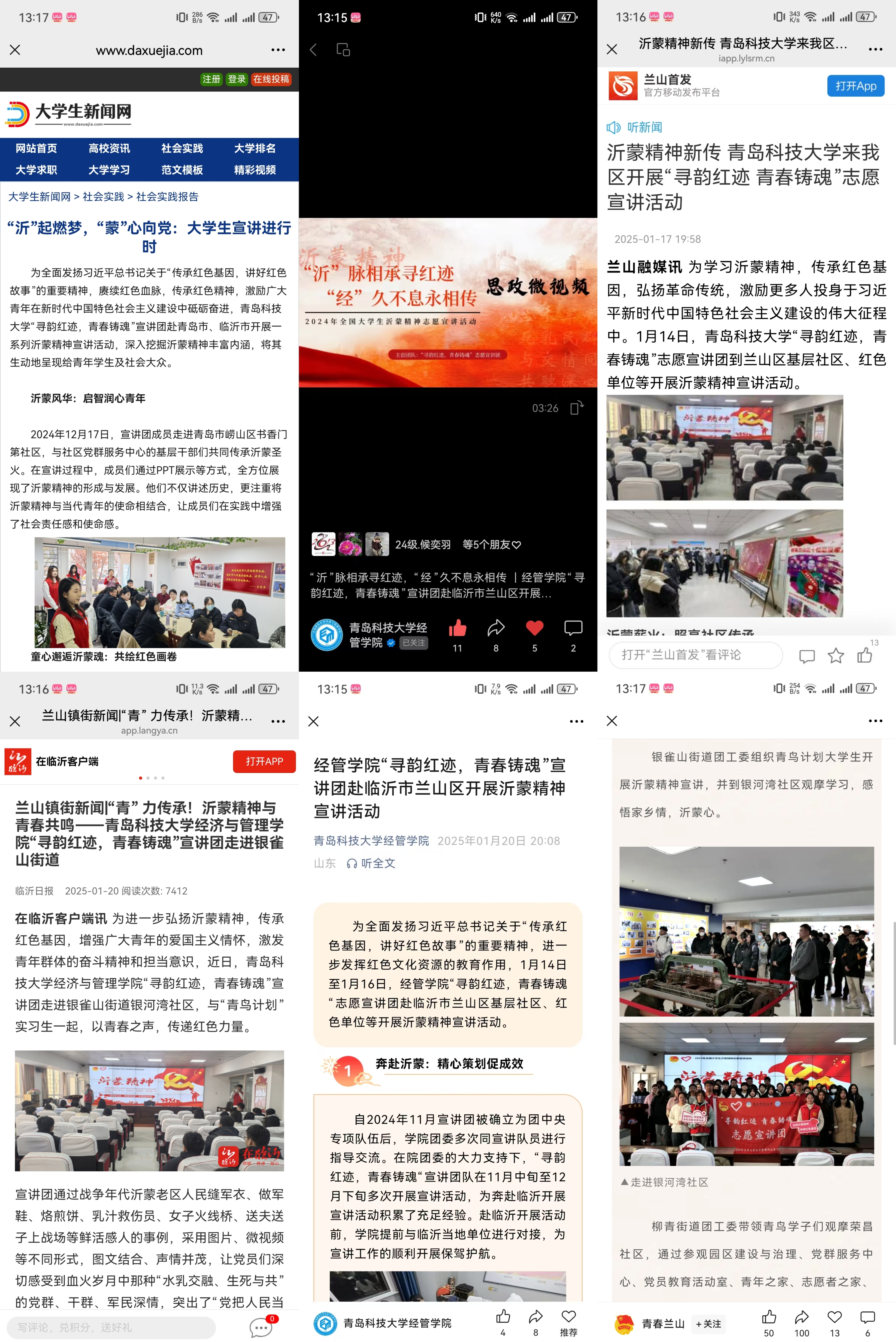 金沙官网开展了多项社会实践活动,涉及到红色教育、青鸟计划、乡村振兴、社区服务等多个领域,共推送院报道21期,主题报道11期,实践稿件入选9001jcc金沙以诚为本团委报道3篇,实践事迹累计被临沂日报、兰山首发、中青校园、大学生新闻网等主流媒体报道16篇次。实践活动的内涵丰富多彩,形式多种多样,旨在培养学生的综合素质,拓宽他们的视野,增强其社会适应能力。学生们在实践中积极参与社会服务和职业体验,在学术与实践、服务与奉献中不断成长,为未来的职业生涯和社会发展贡献自己的力量,充分展现经管学子的社会责任感和历史担当。