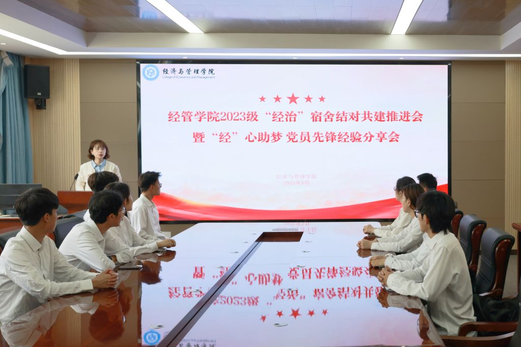 为进一步加强基层党组织建设,激活党建引领新动能,进一步巩固“经治”宿舍建设成果,5月15日,9001jcc金沙以诚为本2023级举办“经治”宿舍结对共建推进会暨“‘经’心助梦”党员先锋经验分享会。