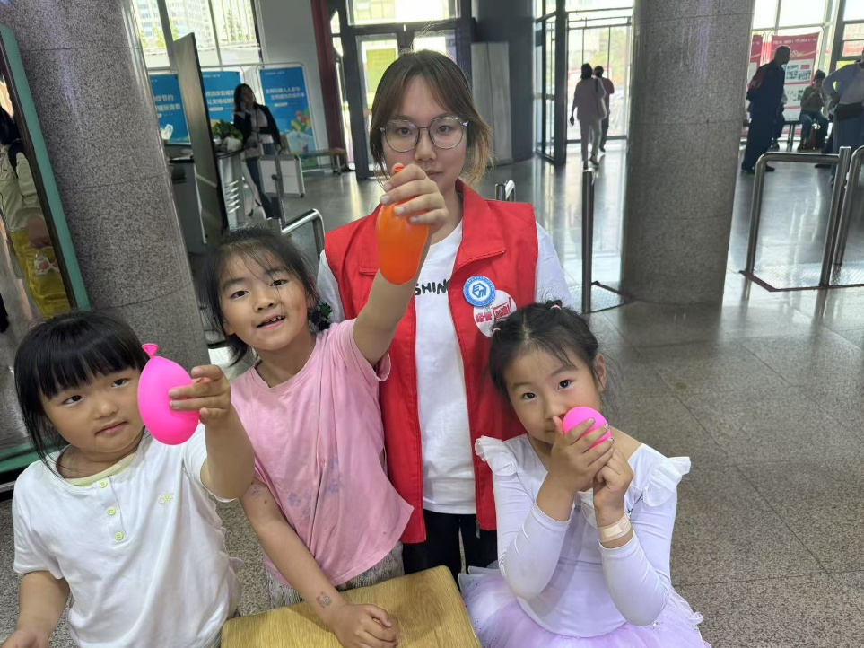 在“生气的河豚”科学实验环节,暖心愿志愿者以自然界河豚的自我保护机制为切入点,通过白醋与小苏打混合产生二氧化碳使气球膨胀的实验,生动模拟河豚遇敌时的形态变化。通过实验,小朋友们不仅亲眼见证了化学变化的奇妙现象,更在志愿者的专业讲解下,深入理解了背后的科学原理,实现了知识传递与爱心接力的有机融合。