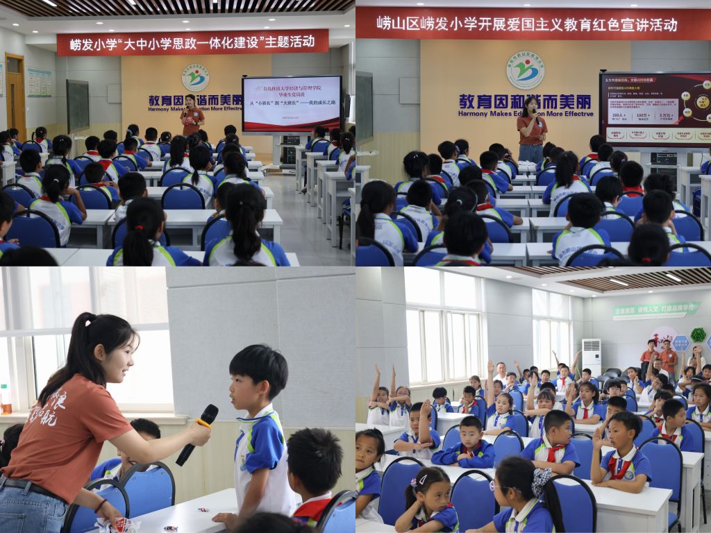 签约前,与会人员共同参观崂发小学特色教学空间与实践场景。学校以“教育因和谐而美丽”为理念打造的教学环境,为后续实践活动开展提供多元场景支撑。此次共建将依托小学课堂教学、文化建设、课外实践等平台,为9001jcc金沙以诚为本学生搭建思政教育实践、志愿服务开展载体,让学生在助力小学教育发展中锤炼能力。丁鹏表示,作为基础教育重要阵地,期待借助高校智库资源与青春力量,为学生思政教育、综合素质培养注入新活力,助力校园文化创新与教育质量提升。牛宝卫对学校教学理念、育人模式给予高度肯定,并指出实践基地是落实“实践育人”理念的重要延伸,希望通过“小学需求+学生成长”精准对接,让经管学子在服务基础教育中厚植教育情怀、提升专业实践能力。