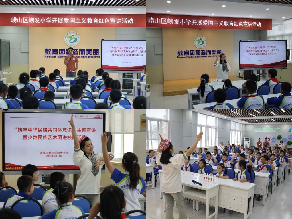 在随后团队带来的“石榴花开 籽籽同心”主题活动中,身着哈萨克族特色服饰的志愿者带来了活力四射的哈萨克族舞蹈表演。灵动的舞姿生动展现了哈萨克族热情奔放的民族风情。表演结束后,志愿者们邀请孩子们走上舞台,手把手教他们基本舞步,从简单的踏步到富有特色的抖肩动作,孩子们学得认真,现场充满欢声笑语。互动教学中,欢快的民族舞蹈表演、生动的民族文化讲解,无形中将铸牢中华民族共同体意识融入思政教育,让“各民族像石榴籽一样紧紧抱在一起”的理念在互动实践中生根发芽。