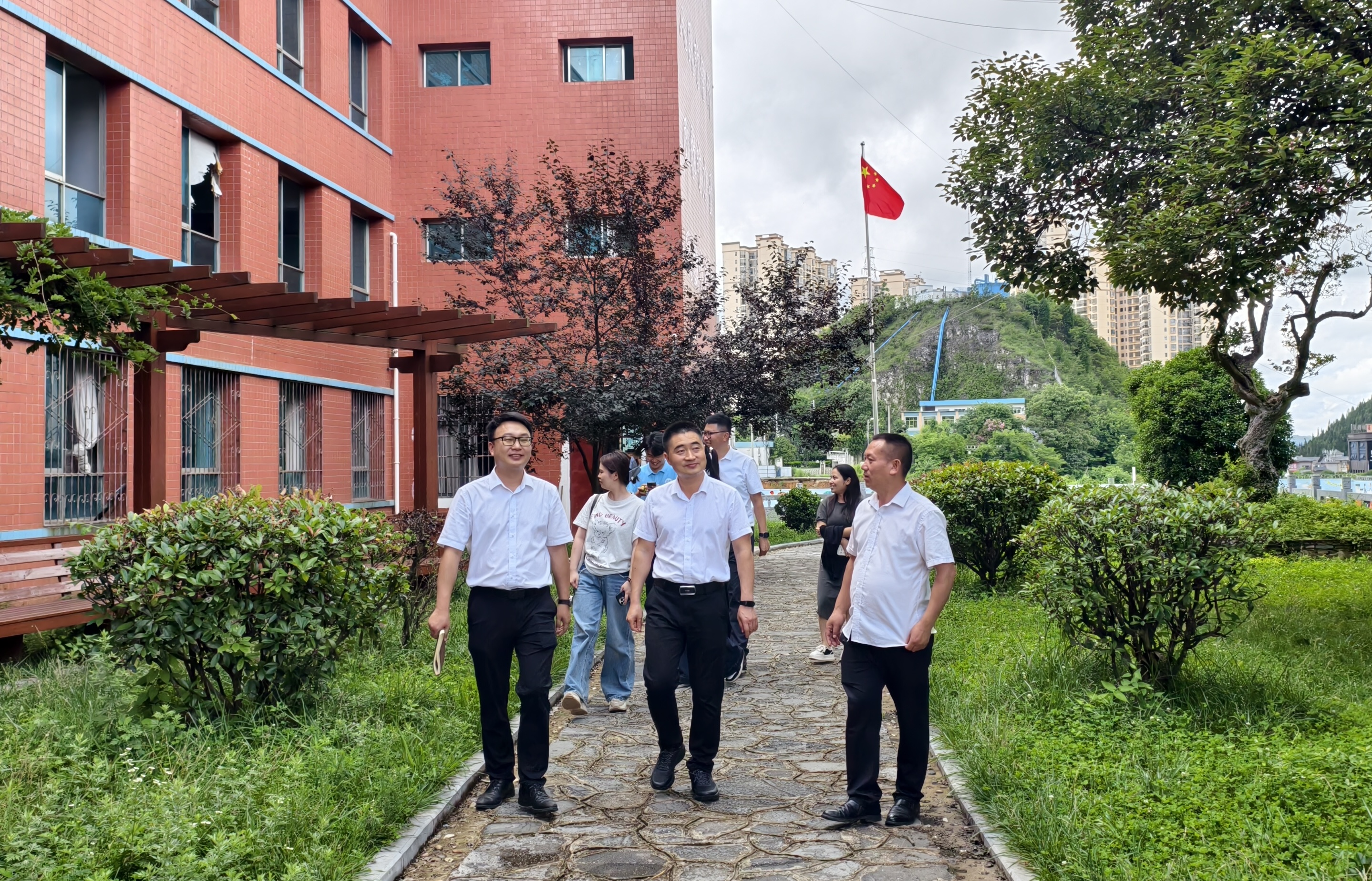 牛宝卫一行实地考察支教学校镇宁自治县第四中学,参观教学楼、体育馆等教学活动场所,了解学校办学情况,听取研支团成员汇报,了解在岗期间工作情况与个人成长。