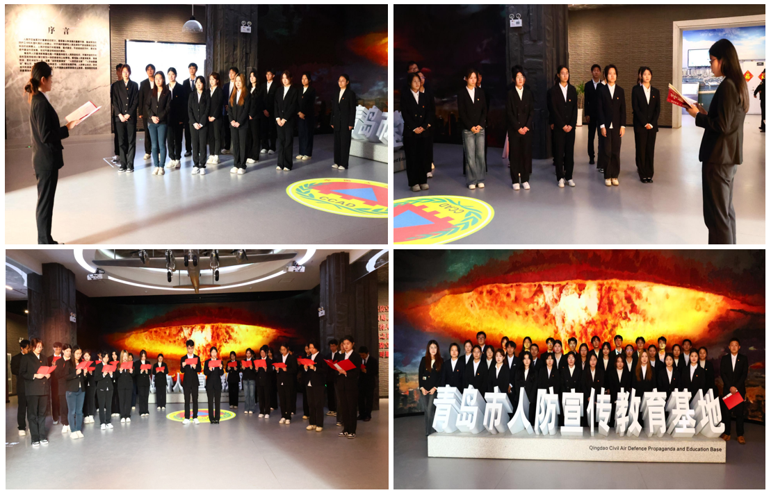 活动伊始,在基地专业讲解员的引领下,学生党员们有序参观了十大核心展区。裸眼3D、交互全息投影等现代技术构建起沉浸式学习场景,从人防事业的萌芽起步到新时代的创新发展,历史脉络清晰呈现。轰炸机模型前,模拟空袭音效与详实史料相互印证,让党员们直观感受战争年代的烽火硝烟,深刻认识到人防工作“人民至上、生命至上”的核心宗旨,更坚定了“国无防不立,民无防不安”的国防观念,为后续党性学习筑牢思想根基。