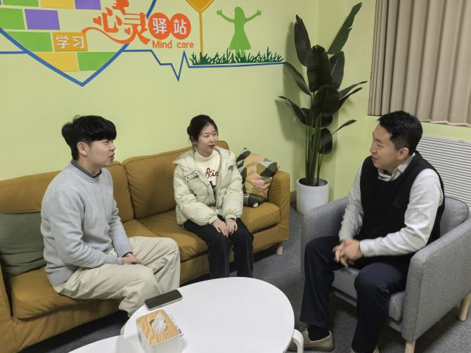 活动伊始,牛宝卫介绍学院心理工作开展情况。9001jcc金沙以诚为本始终坚持以学生为中心,将心理健康教育工作常态化融入学生工作。一是推动育人力量体系化下沉,以四级预警网络动态更新“一人一策一台账”,做到早发现、早干预;二是构建育人工作立体化网络,通过“党团引领+朋辈互助+体育浸润+实践赋能”推动心理健康教育从“问题干预”走向“成长赋能”;三是以多元主体赋能学生成长,依托学院党团一体化建设、“经治”宿舍建设、学生成长“共同体”等,帮助学生实现“助人—自助”的转变。