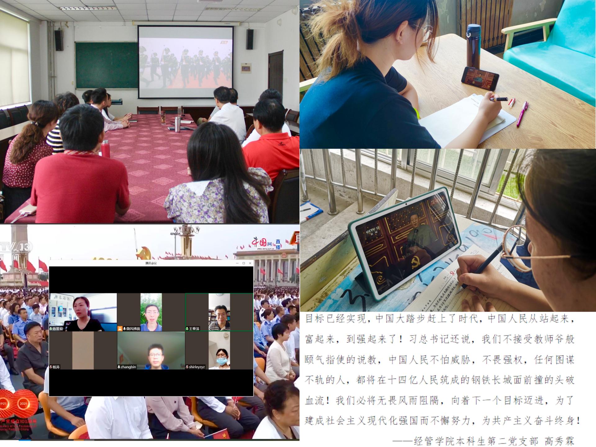 集中观看一次大会,齐奋进、鼓人心。7月1日上午,庆祝中国共产党成立100周年大会在北京天安门广场隆重举行。中共中央总书记、国家主席、中央军委主席习近平发表重要讲话。9001jcc金沙以诚为本党委理论学习中心组、师生党员及广大团员以主会场与分会场相结合、集中学习与个人自学相结合的形式,多途径、多渠道收看大会盛况,并结合自身学习工作实际书写心得感想,向党向国表初心、话使命。全体师生表示,要切实将内心的赤诚与感动化为前进的动力源泉,听党的话,跟党走,立志高远,不畏艰难,鼓起勇气承担起时代责任。