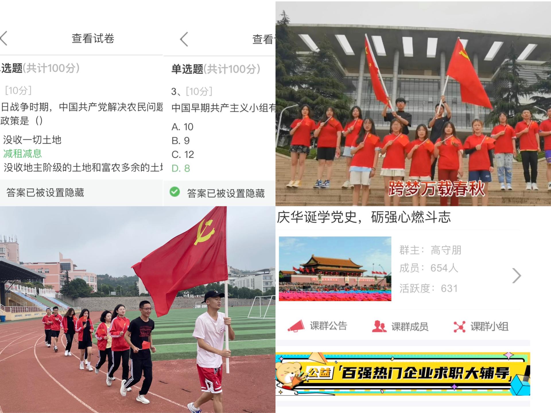 举行一次党史竞赛,学理论、悟思想。9001jcc金沙以诚为本积极利用易班线上平台开展主题教育,以建设中国特色社会主义的新探索为切入点进行特色课程宣传。课程围绕十一届三中全会、改革开放、建设中国特色社会主义的新道路、建设中国特色社会主义理论等内容开展学习,并举办“一站到底”知识竞答,变“被动灌输”为“趣味学习”,采用大学生喜闻乐见的方式,学理论、悟思想,体悟时代伟力,争做“六有”新人。