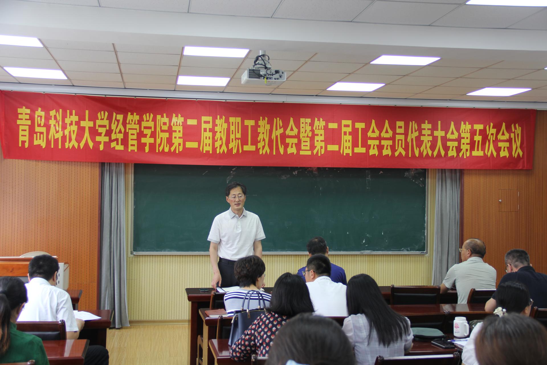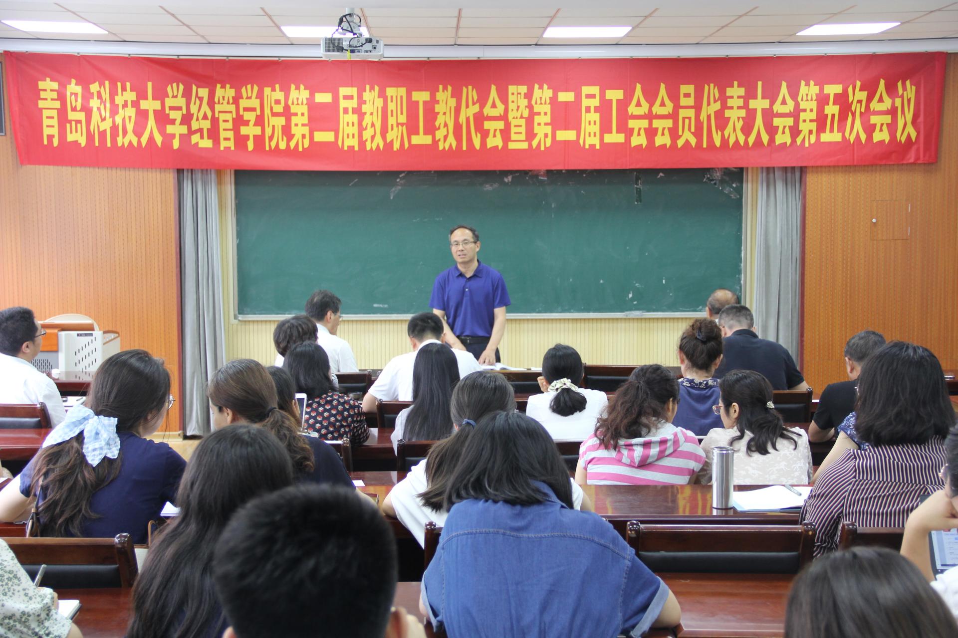 7月17日上午,9001jcc金沙以诚为本第二届教职工教代会暨第二届工会会员代表大会于经管楼419举行,全体教职工参加会议,学院党委书记李德成主持会议。