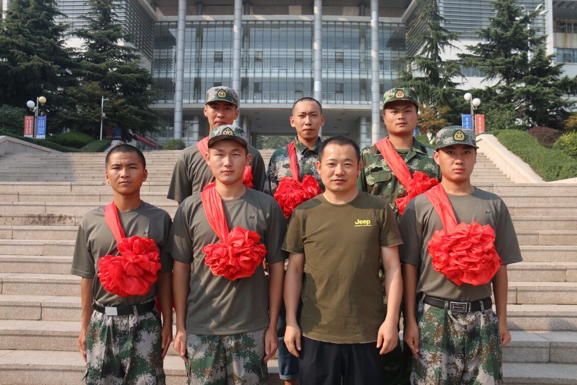 入伍的七名同学分别是市场营销柏延铭,即将去往武警边防新疆阿克苏边防;工业工程杜鹏,即将去往空军西部战区西空乐山基地;工业工程陈超超,即将去往安徽合肥武警消防;工商管理李松,即将去往陆军北部39军190旅;物流管理刘士龙,即将去往军委动员部浙江省军区;市场营销王勇,即将去往陆军西部21军62旅;工商管理苑祥臣,即将去往陆军北部9军190旅。这七名同学都有着向往军营、锻炼自己、报效祖国的决心和信心,即将到军营成为一名光荣的解放军战士,党总支副书记兼副院长张同雷与他们合影留念,希望他们能够艰苦训练、服从组织,肩负起保家卫国的光荣使命。