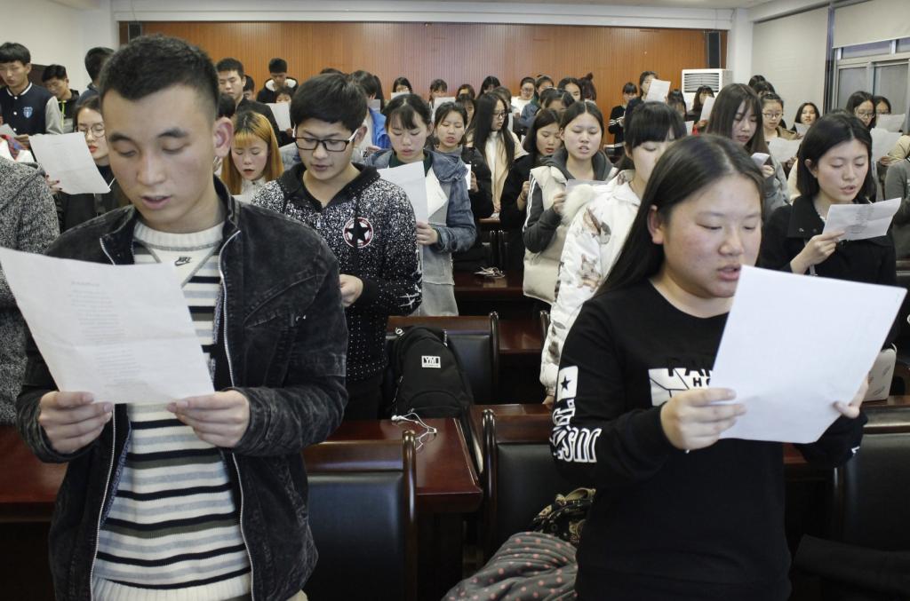 为丰富校园文化活动,构筑良好的育人环境,展现金沙官网学生奋发向上的精神风貌,提升学生的人文艺术素养,9001jcc金沙以诚为本成立“天籁”合唱团。合唱团得到了学生的积极响应,前期经过报名、面试筛选环节,最终确定100名爱好音乐的同学为合唱团成员。2017年3月16日晚7点,9001jcc金沙以诚为本“天籁”合唱团开班仪式在经管楼419室拉开帷幕,学院全体专兼职辅导员与合唱团全体成员一起参加了开班仪式。