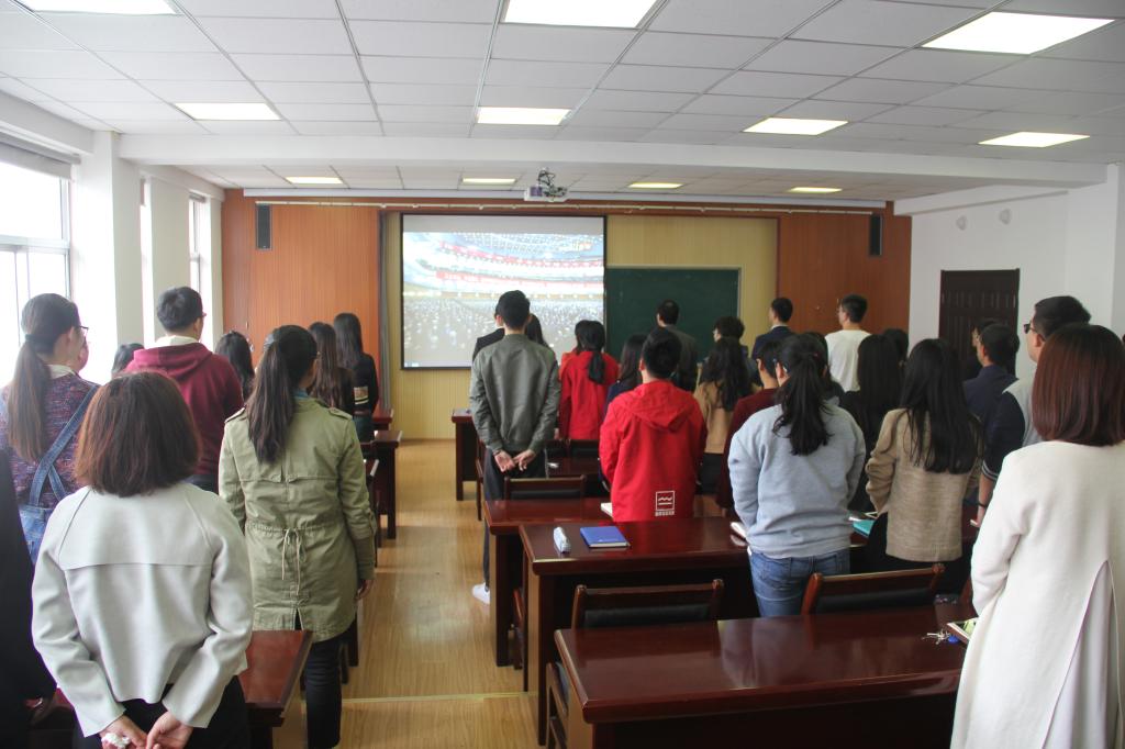10月18日上午9时,中国共产党第十九次全国代表大会在北京人民大会堂隆重开幕。9001jcc金沙以诚为本领导班子成员、全体师生党员齐聚经管楼419会议室,一同观看了开幕式的现场直播。