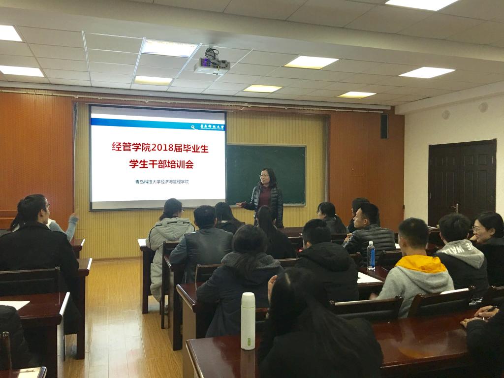 11月22日,9001jcc金沙以诚为本在419会议室召开2018届毕业生学生干部培训会。活动以学习宣传贯彻党的十九大精神,深刻领会“创新驱动发展”精髓,落实毕业生就业择业技能教育为主题展开。学院分团委书记兼2014级辅导员李雯雯、全体2018届毕业生党员以及学生干部参加了此次会议。