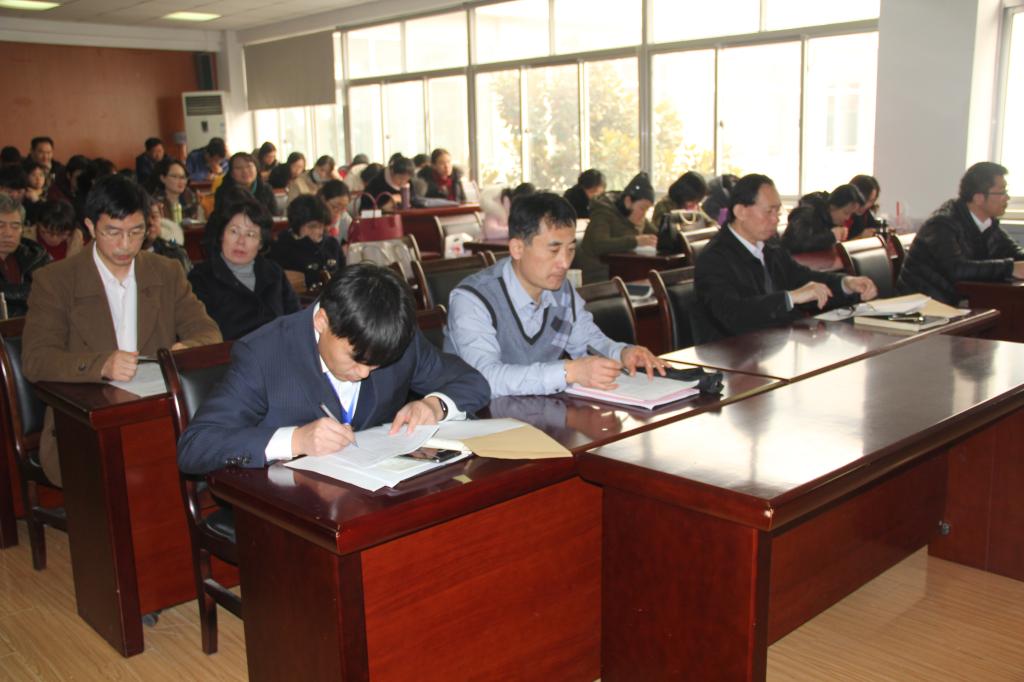 1月16日下午,9001jcc金沙以诚为本楼在学院419室召开2017年度述德述职述廉大会。学校离退休处党总支书记杨中华、学校办公室综合科主任王晓娜代表学校,学院党政领导及全体教师参加了会议。会议由党总支书记聂法良主持。