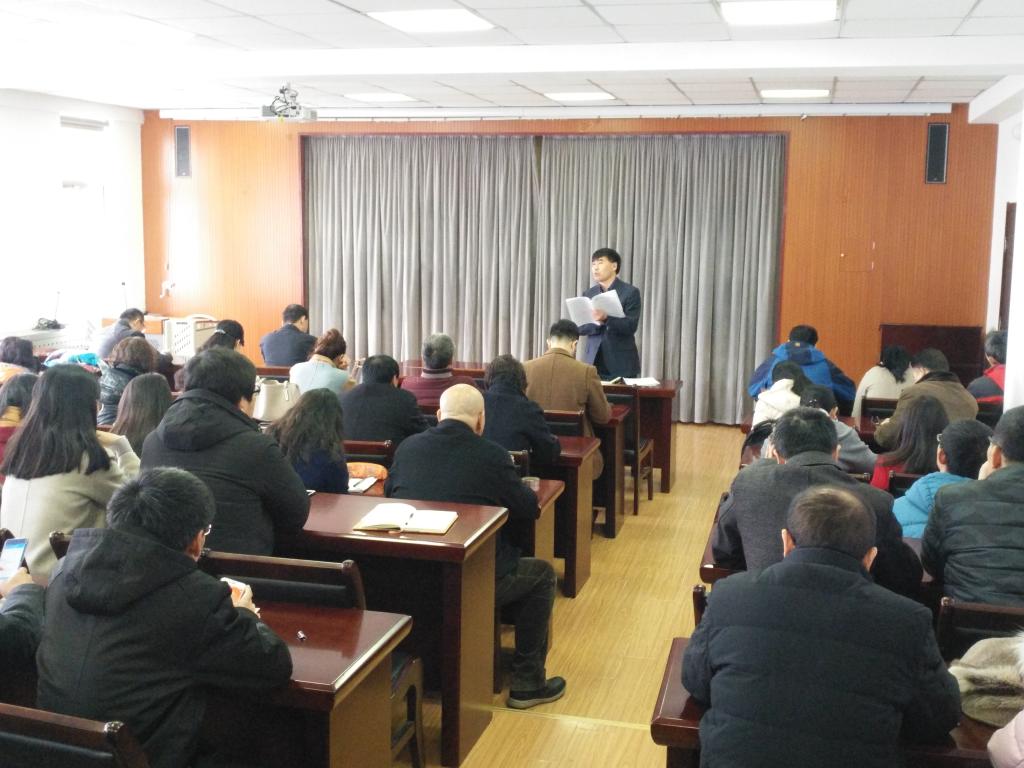 3月8日上午,9001jcc金沙以诚为本在南区2号楼410室召开学院全体教师大会,传达学习贯彻学校年度工作研讨会会议精神,全体教师参加了会议,会议由学院党总支书记聂法良主持。