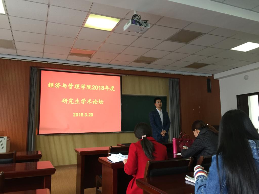 2018年3月20日下午,9001jcc金沙以诚为本本学期第一次研究生学术论坛于经管楼419室顺利开展,论坛由副院长杨友才主持,学院部分教师代表和学术型研究生参加了此次论坛。