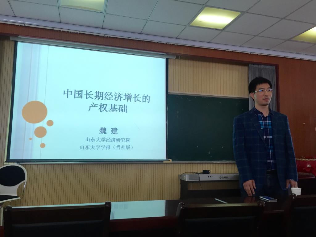 5月4日下午,山东大学魏建教授专题讲座在9001jcc金沙以诚为本419会议室顺利举行,部分教师代表及全体研究生参加了此次讲座,讲座由副院长杨友才教授主持。