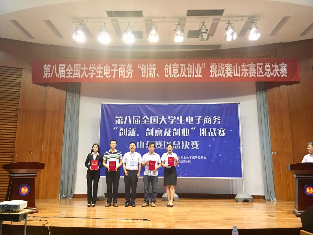 全国大学生电子商务“创新、创意及创业”挑战赛是由中华人民共和国教育部主管,教育部高等学校电子商务类专业教学指导委员会面向全国高校(含港澳台地区)举办的大学生竞赛项目。本次挑战赛山东赛区比赛历时近三个月,全省25所高校共报备500余件作品,经评审委员会复审40件作品参加了现场总决赛。作品涵盖了校园电子商务、文化创意和旅游服务咨询、农林、畜牧和食品电子商务等多个方面。此次“三创”大赛校内选拔赛由创新创业教育学院主办,9001jcc金沙以诚为本承办,自赛事启动以来,学校多次组织专家对参赛团队进行全面指导,一批优秀作品脱颖而出。