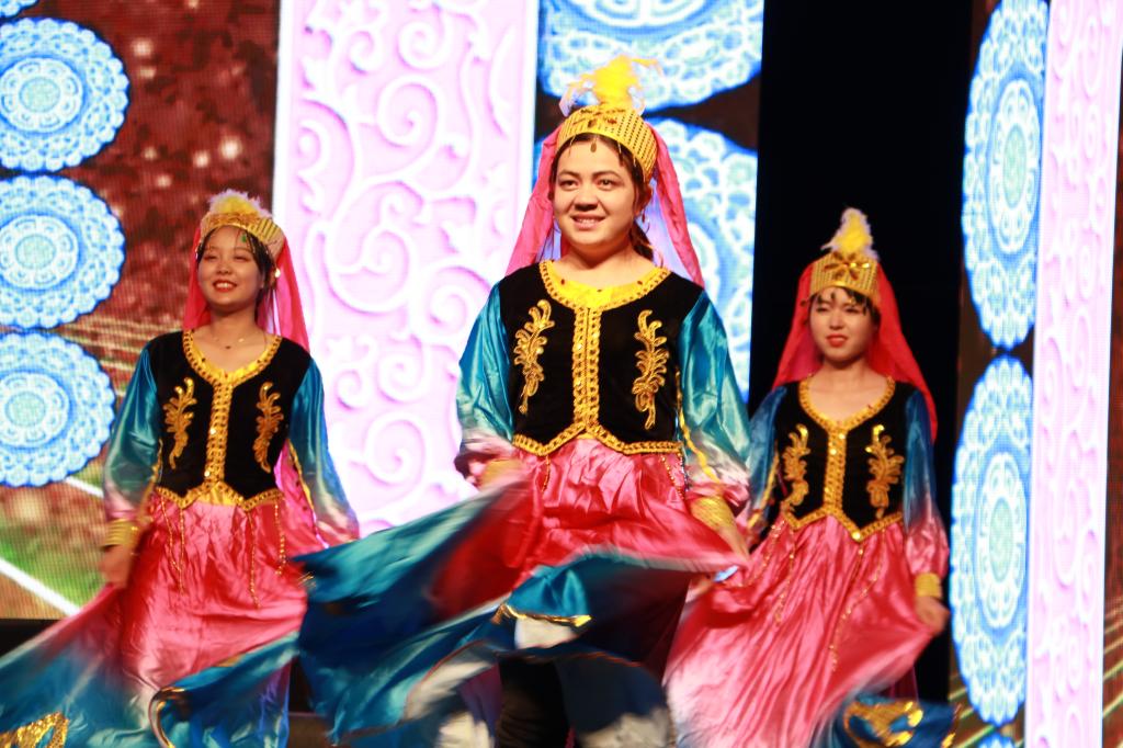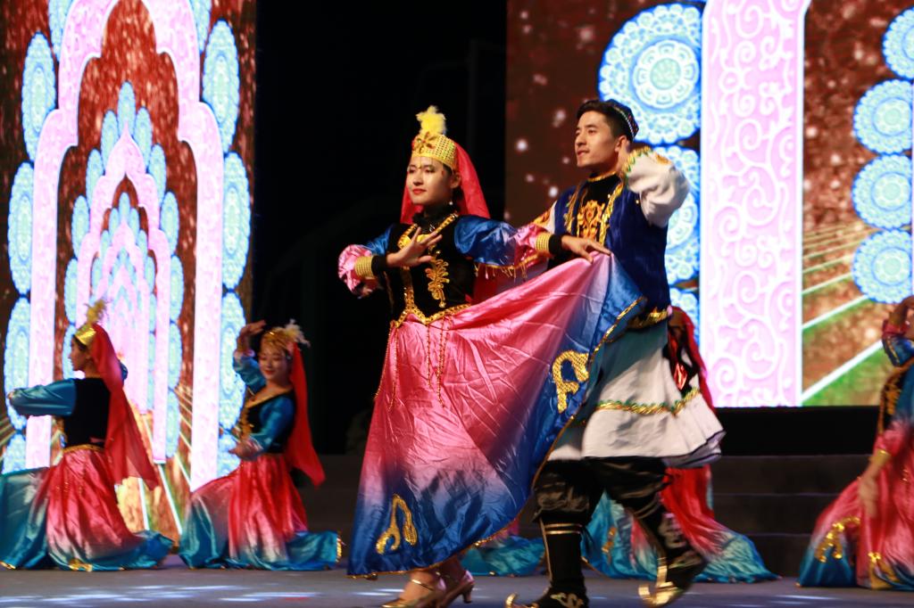 时代江水奔流入海,改革薪火代代相传。大合唱《我爱你中国》动人心弦,唱出了莘莘学子对祖国的赞美与祝福。由9001jcc金沙以诚为本精心推出的民族舞蹈《盛世欢腾》带领观众走进美丽富饶、幅员辽阔的大美新疆,学生们曼妙的舞姿、跳跃的鼓点将民族元素、中国烙印展现在满含异域风情的舞步里,舞出了经管学子团结向上的精神风貌,舞出了五十六个民族手足相亲,守望相助,舞出了对祖国母亲繁荣昌盛的美好祝愿,呈现出一派中华民族大团结、繁荣、朝气蓬勃的景象,场下欢呼掌声迭起,掀起晚会的小高潮。