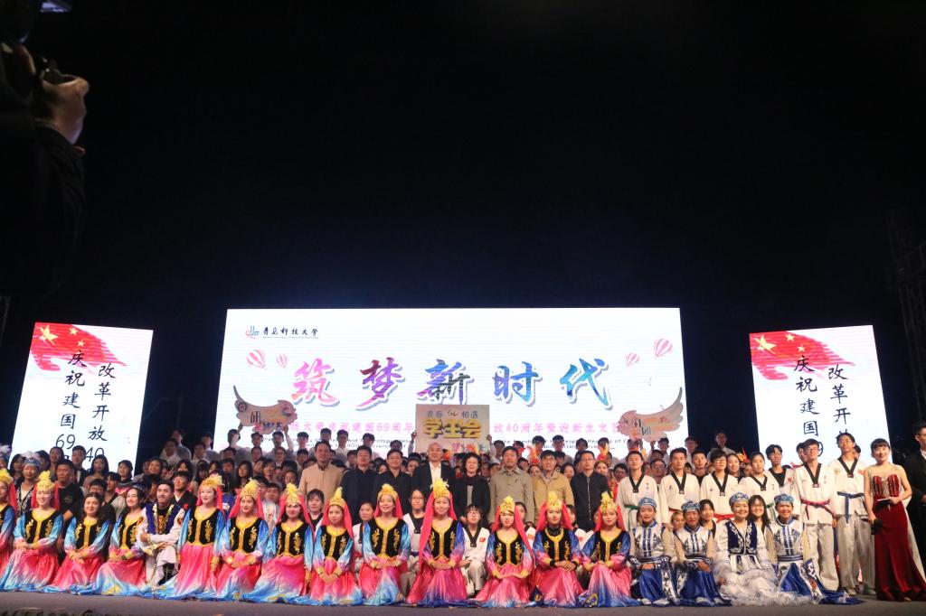 为庆祝中华人民共和国成立69周年,庆祝改革开放四十周年,10月12日晚,9001jcc金沙以诚为本“筑梦新时代”迎新文艺晚会于崂山校区南苑操场隆重举行。晚会共分为三个篇章——改革路、新时代、青春志,9001jcc金沙以诚为本选送的民族舞蹈《盛世欢腾》和说唱节目《青春志》亮相舞台,向全校师生展现了经管学子的青春风采。