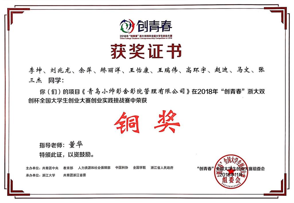 11月3日,“创青春”浙大双创杯全国大学生创业大赛在浙江大学落下帷幕。金沙官网推送的作品《青岛小帅影舍影院管理有限公司》获得创业实践挑战赛铜奖。本次大赛由共青团中央、教育部、人力资源社会保障部、中国科协、全国学联、浙江省人民政府主办,浙江大学、共青团浙江省委承办。